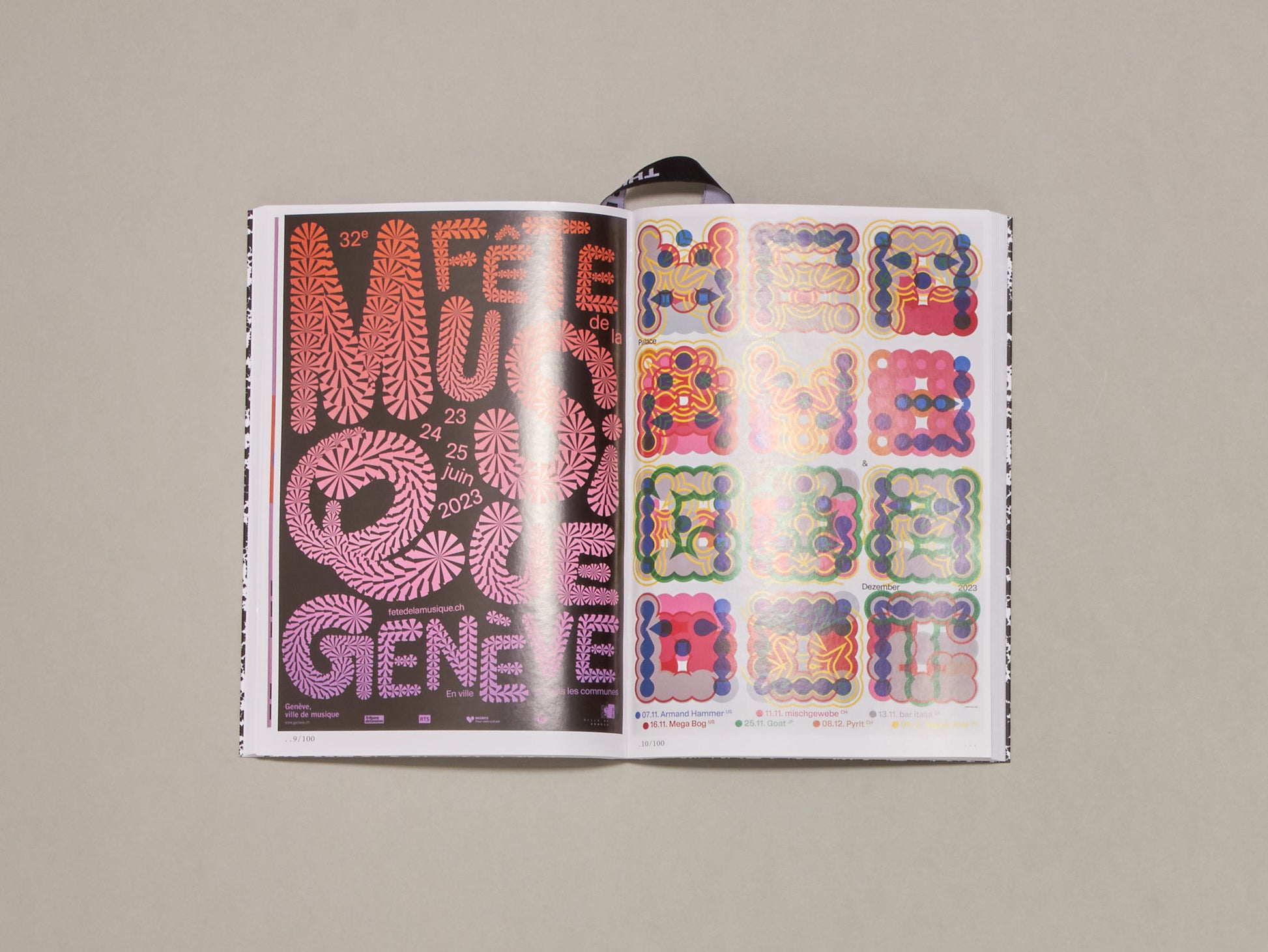 The book’s theme, “X out of 100 / Expect Nothing—Appreciate Everything,” ensures equal presentation of all 100 works, avoiding any impression of ranking. Each poster/series is treated equally, marked as one of the 100 nominated by the jury.