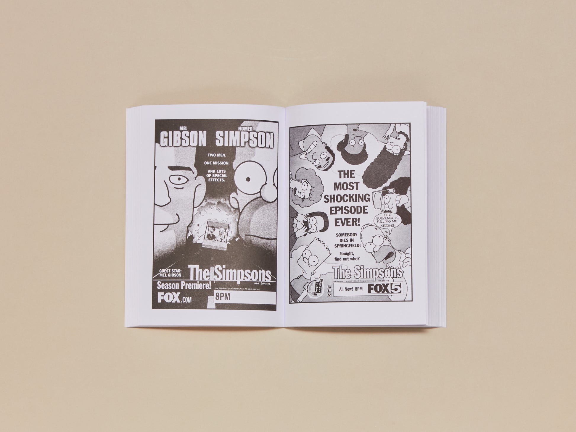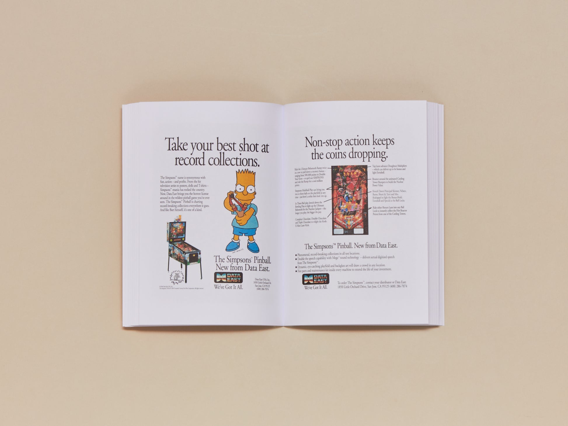 224 page, full colour, perfect bound A5 book featuring a collection of print advertisements from The Simpsons spanning TV, video game & arcade machines, VHS, books and Butterfinger commercials & many more.