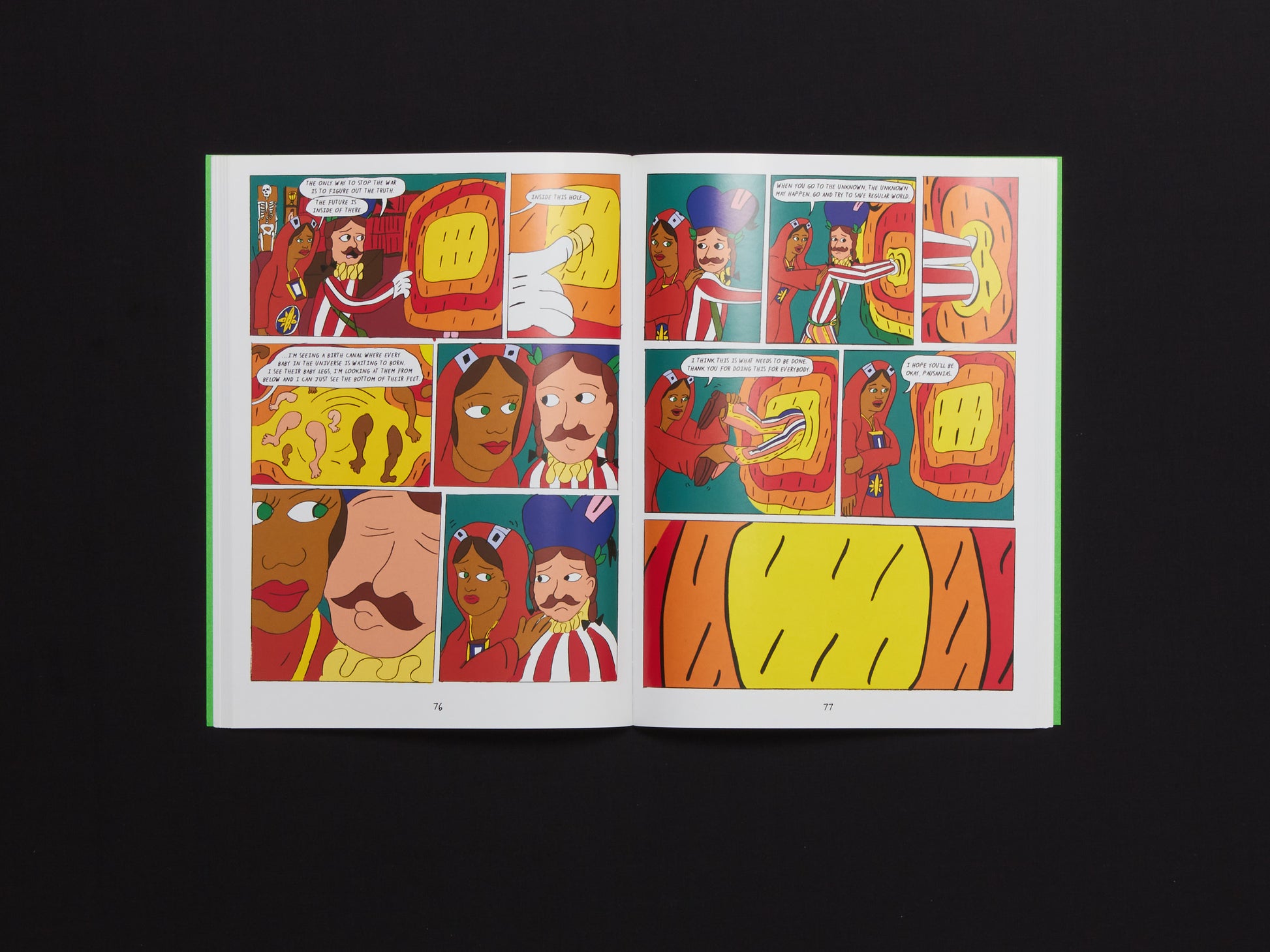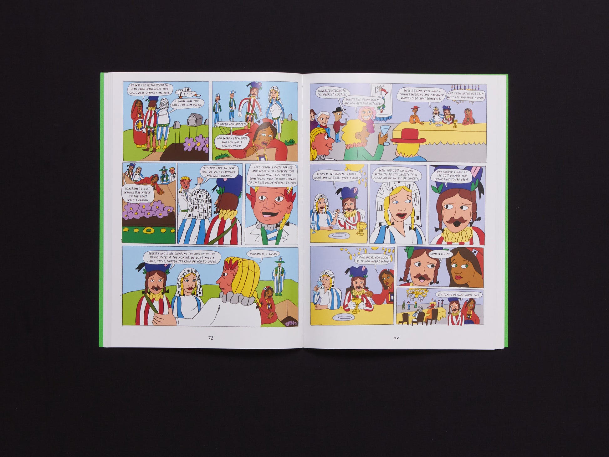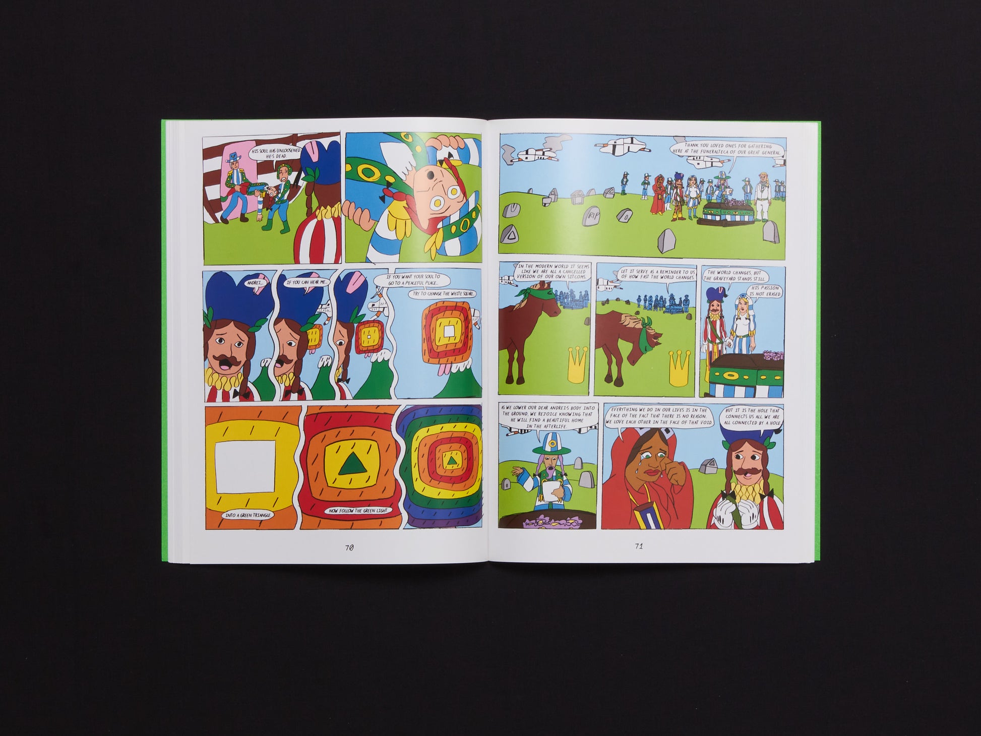 In War and Paradise, a graphic novel by creative polymath and Moldy Peaches founder Adam Green (born 1981), the internet meets the Middle Ages and satire becomes the most logical response to our own wildly confusing, nonsensical world. A spiritual sequel to the 2016 cult film Adam Green's Aladdin, the story follows our hero Pausanias, a geographer of the soul, alongside a cast of unconventional characters through a kaleidoscopic landscape of absurdism, illustrated in full color by musician Toby Goodshank, animator Tom Bayne and Green himself.