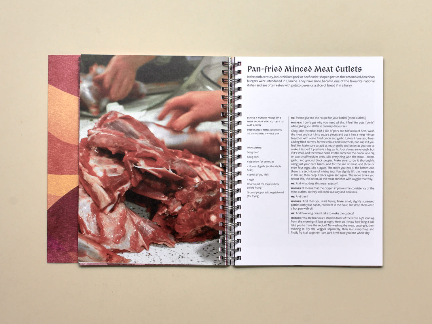 Alex’s mum Yevheniia shares three of her most infamously delicious recipes, in detail, and the book’s wire-bound format is inspired by community-made cookbooks that are meant to be shared amongst friends and neighbours.