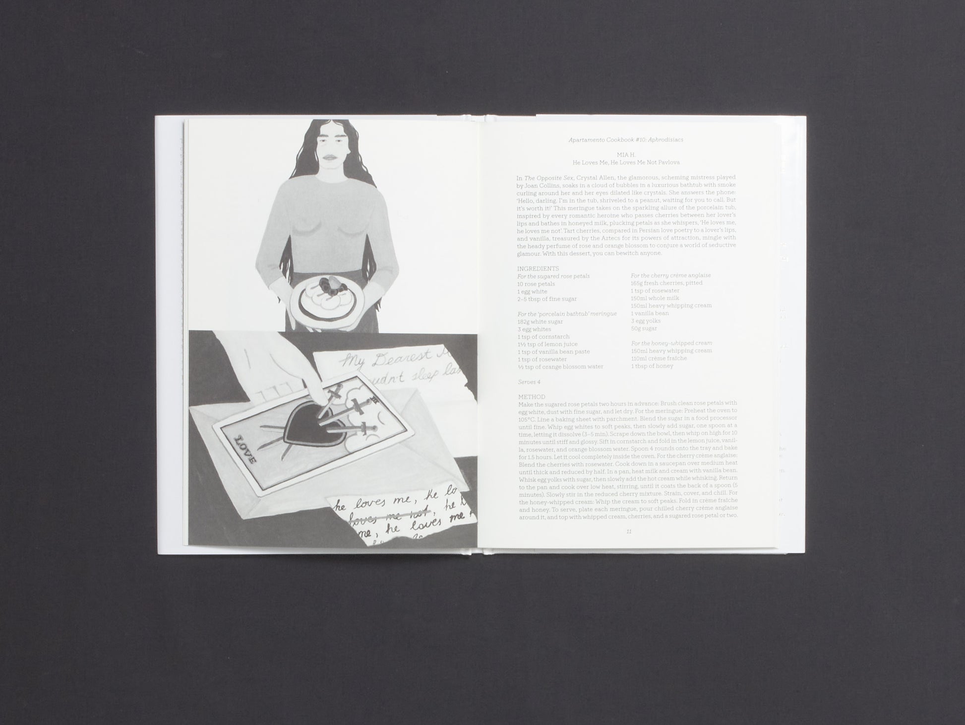 For the 10th anniversary of Apartamento Cookbooks, we’re delighted to bring you Cookbook #10: APHRODISIACS. Seductively illustrated by Sainte Maria, and filled with 16 recipes from lovers, ex-lovers, and food lovers from around the world, this volume unravels the obscure, the historical, the deeply personal, and the brand new world of aphrodisiacs.