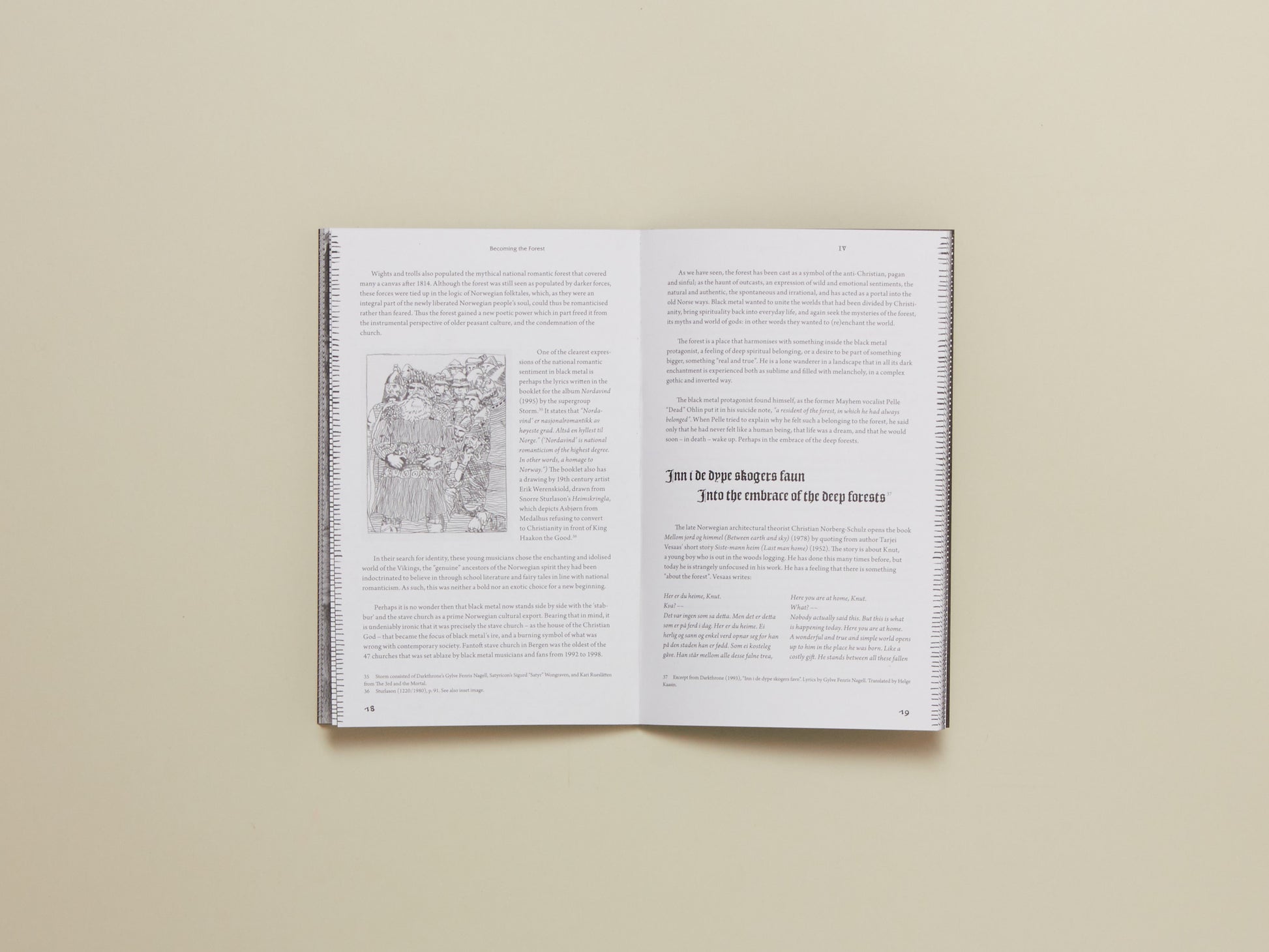 BTF IV includes specially commissioned essays, interviews and illustrations, by animists, philosophers, artists and musicians, including: an essay on panpsychism as a possible answer to the climate crisis; a philosophical-historical overview of the relationship between black metal and the forest; a magical-realist account of a sylvan trip gone wrong; an in-depth interview with Rune from Nordic Animism, whose project looks to Scandinavian folklore and customs for “hidden animist knowledge” and more respectful ways of living with other subjectivities.