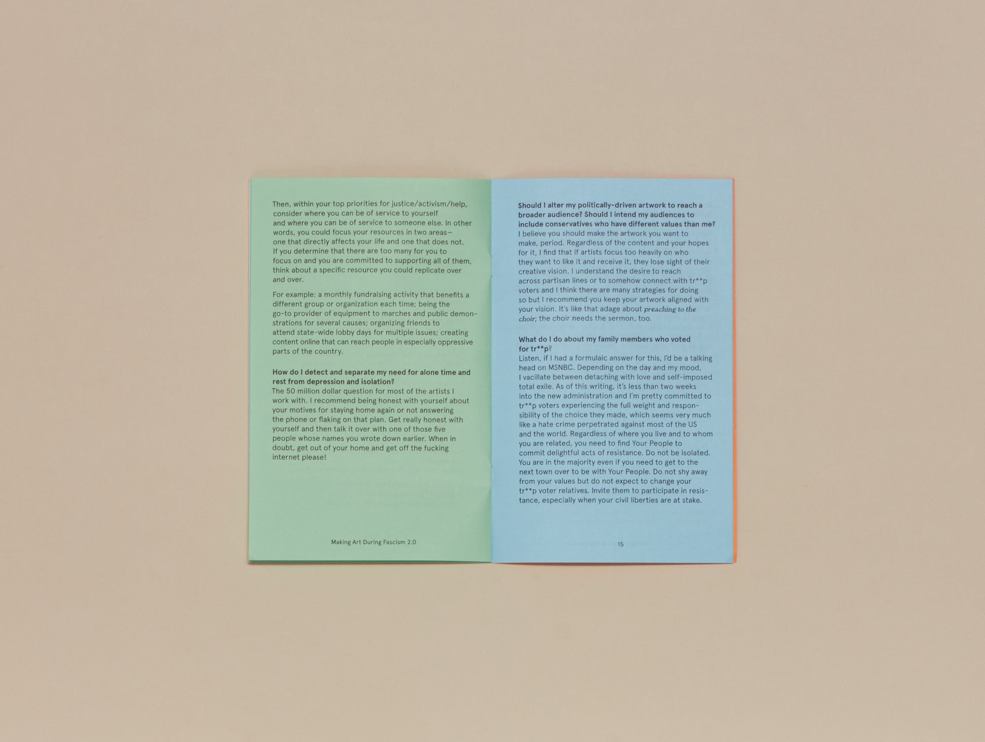 Self published by Co—Conspirator Press with the support of Feminist Center for Creative Work. Designed by Kate Johnston, Riso-printed by Neko Natalia.