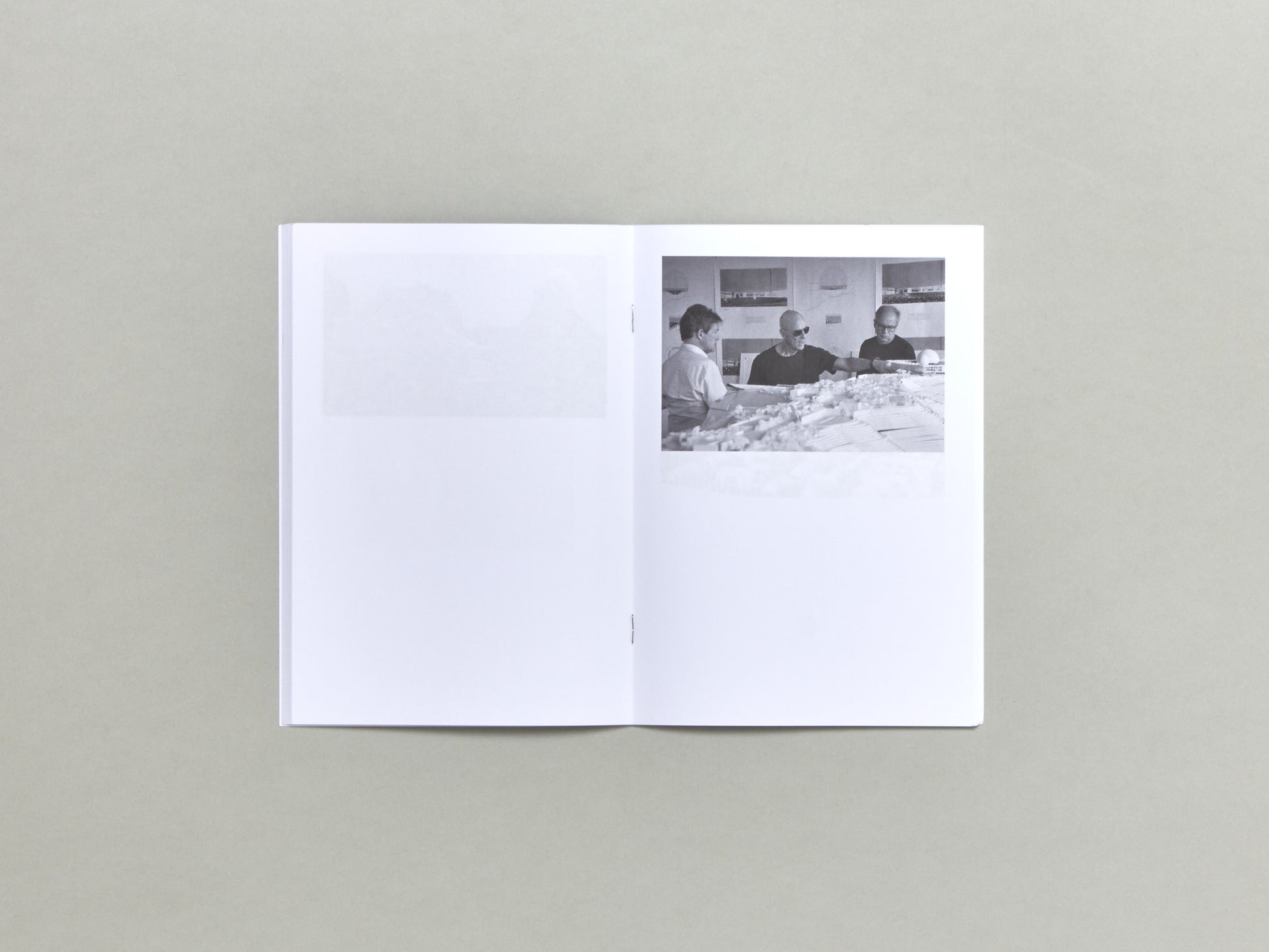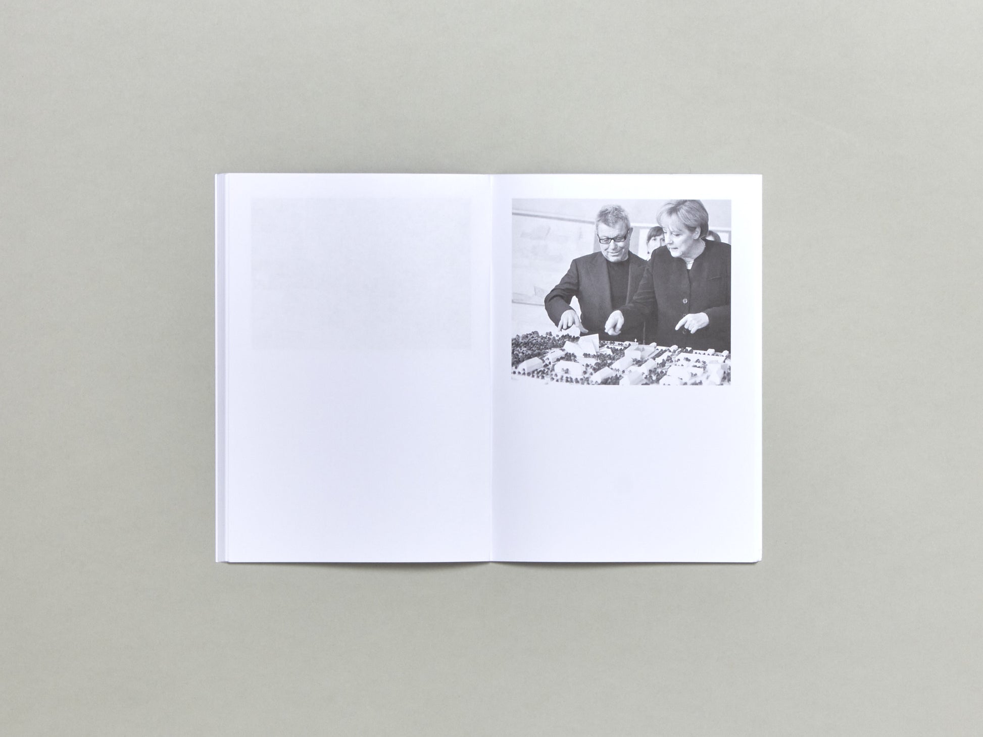 This artist book brings together 44 photographs showing famous architects together with their architecture models. The images are arranged according to the position of the model and the height of the architect’s view: from those looking up to the model to those looking down on it from a god-like perspective … By this, these image start to speak about the model 'as a stage' on which the architect performs his role.