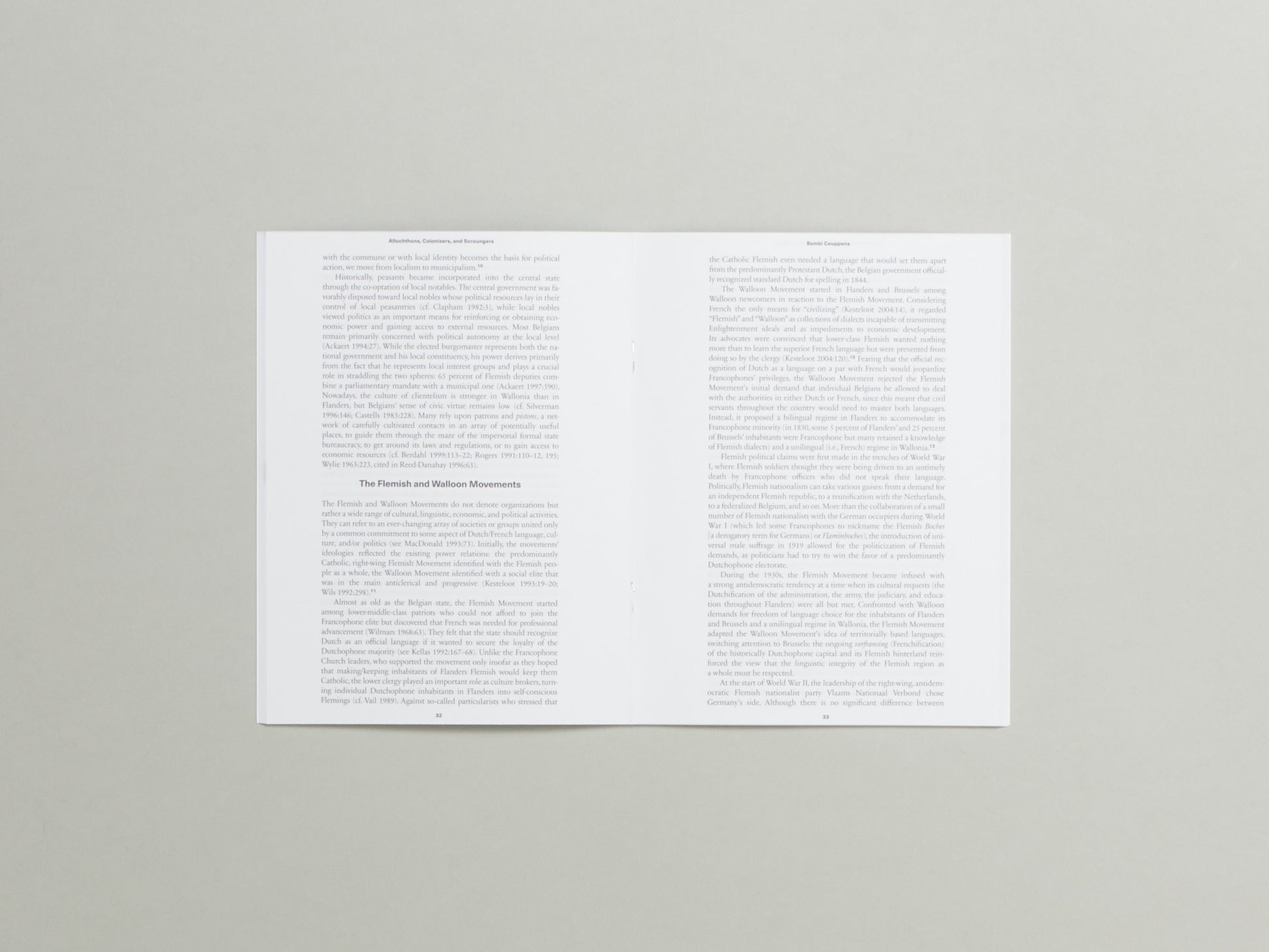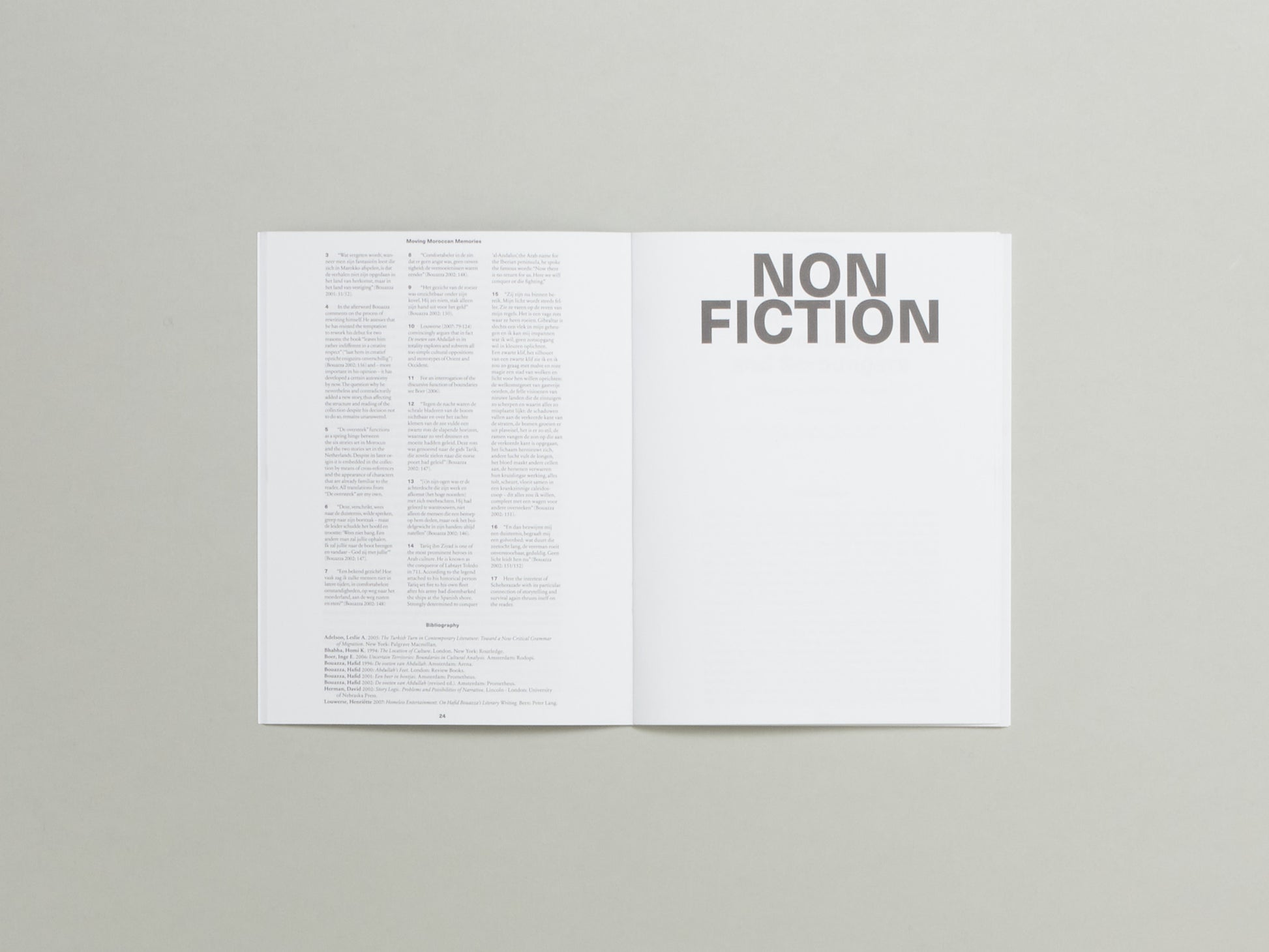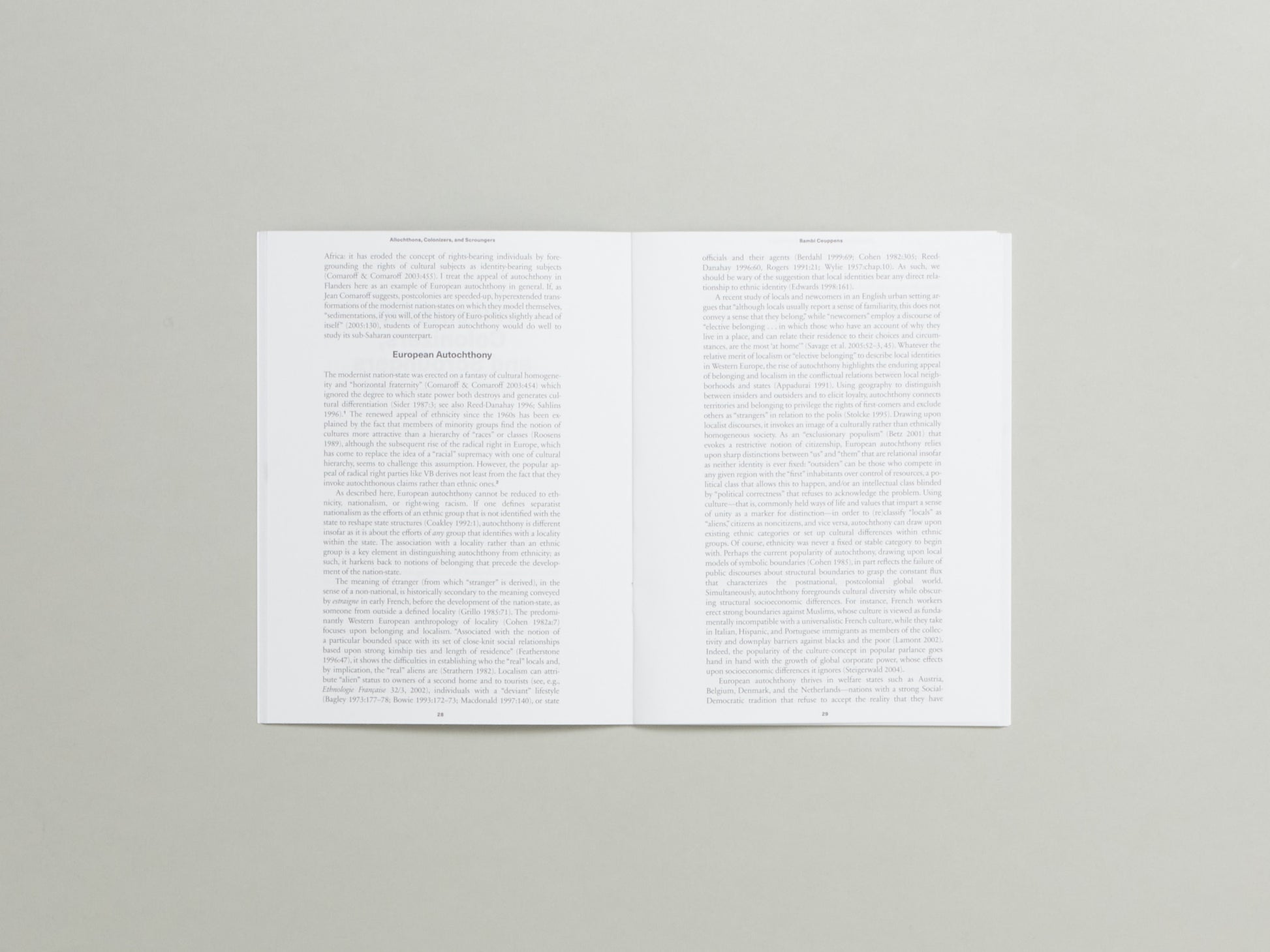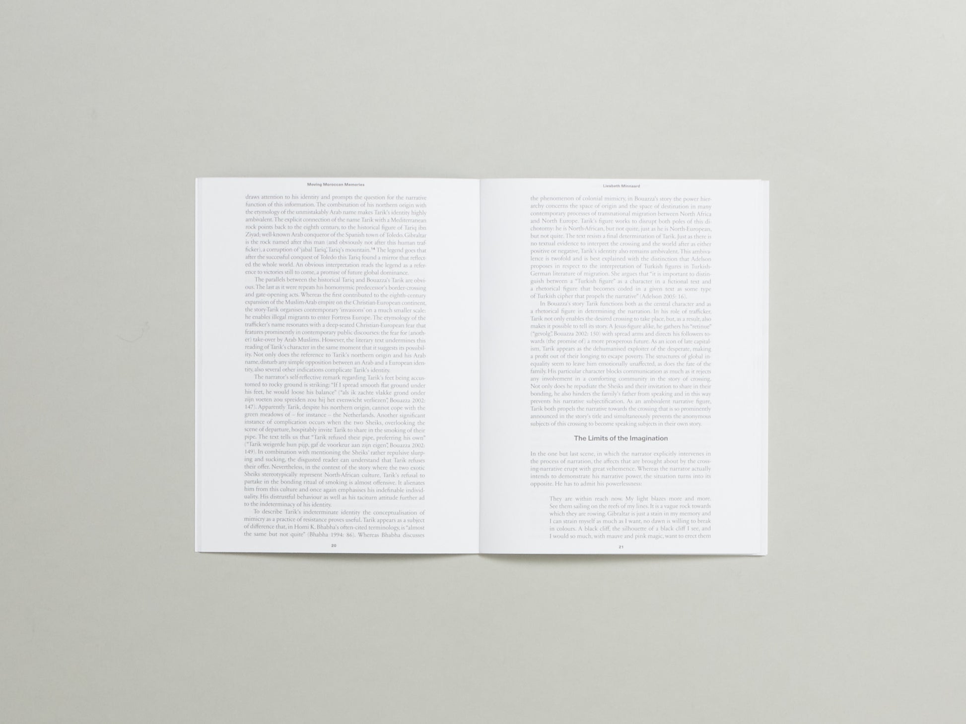 Cahier I, published on the occasion of Out, Bruno Zhu’s commission at M HKA, Antwerp, addresses the fictioning of the migrant subject. Liesbeth Minnaard highlights the several movements embedded in the writing and publishing of Moroccan-Dutch writer Hafid Bouazza’s short story ‘De oversteek’. Bambi Ceuppens recounts the presence of autochthony discourses in Flanders and how they embolden the refusal to share welfare resources with immigrants.