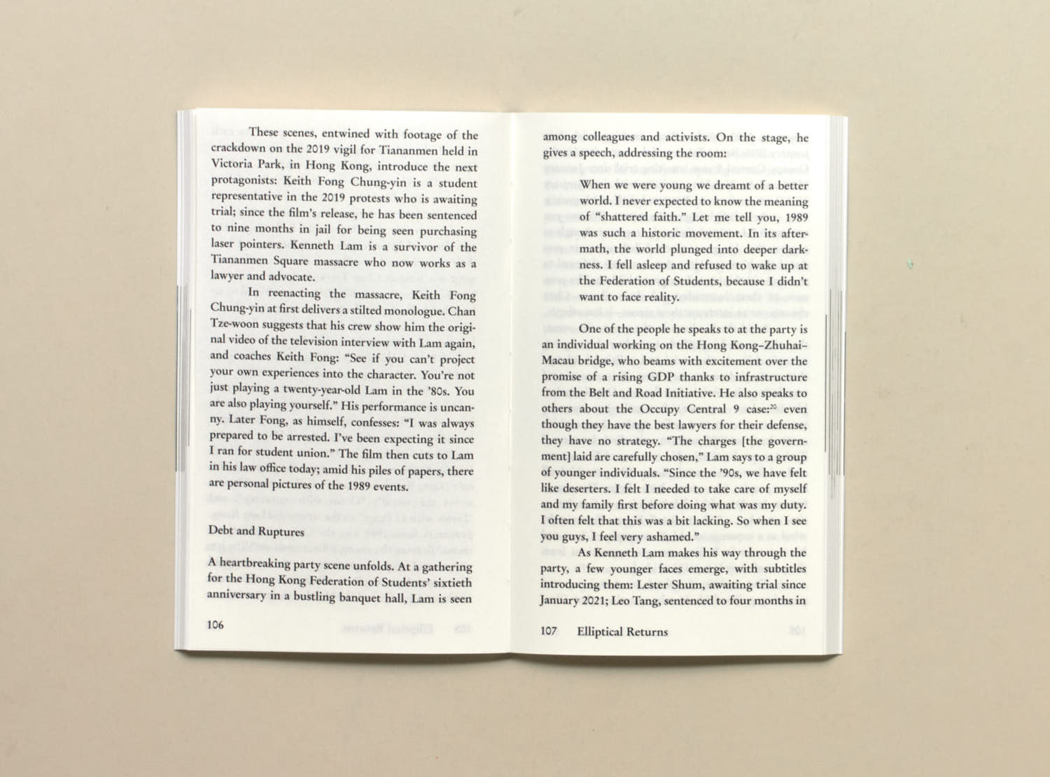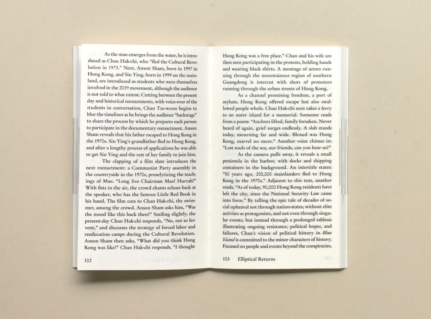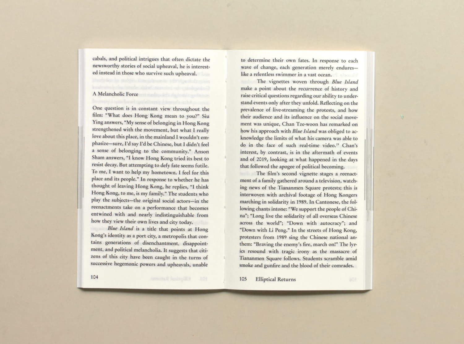 The publication includes a foreword by film and media studies historian, Jean Ma. Film stills from filmmakers Chan Tze-woon and the anonymous collective Hong Kong Documentary Filmmakers; photographs by the artist An-my Lê; and images from Sia’s short film, The Sojourn (2023), are interspersed between each essay, inviting the reader to construct or consider a cinema by other means.