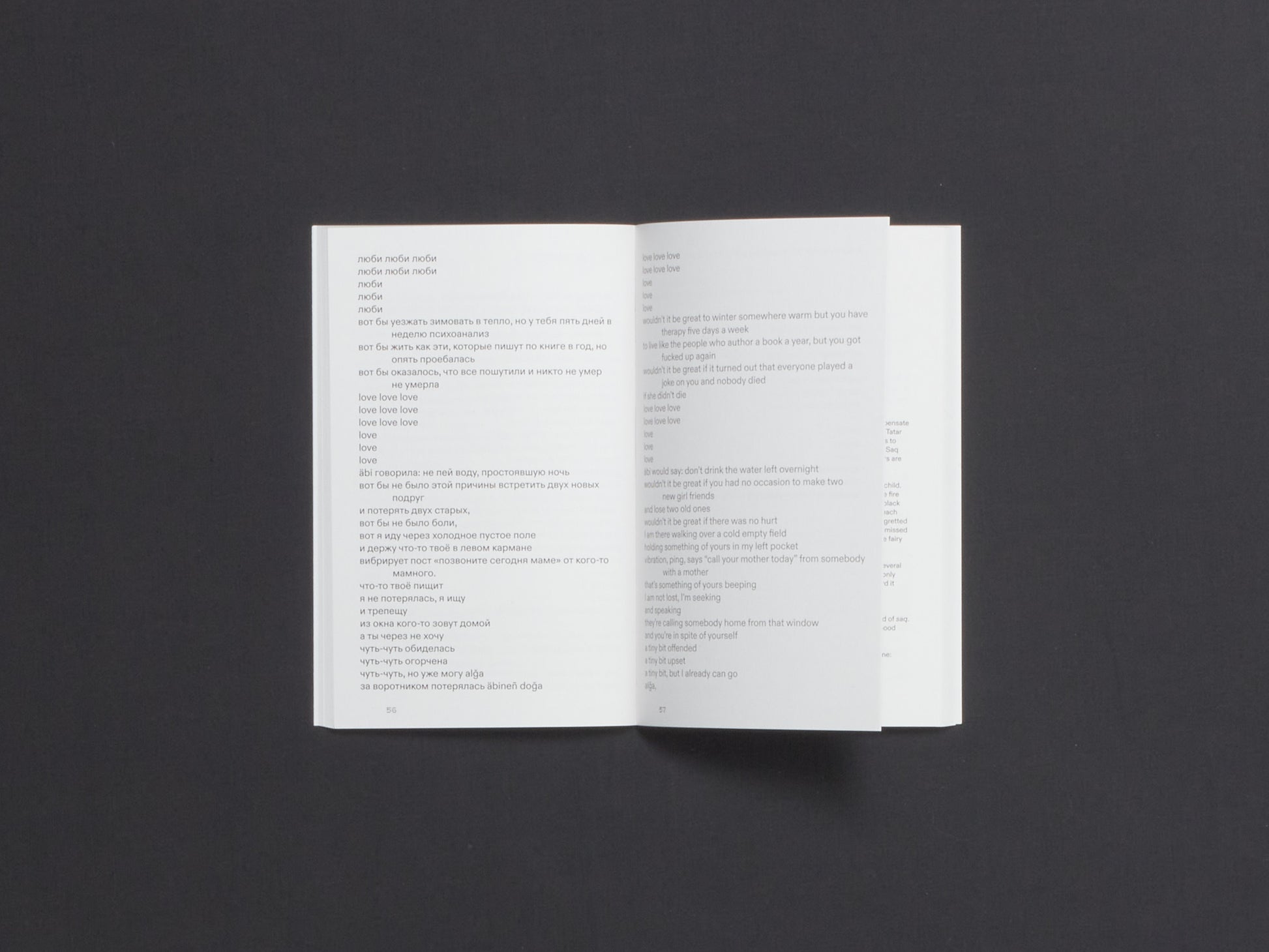 With Rasuleva’s introduction and Ostashevsky’s afterword, Lostlingual also explores the social and conceptual perspectives of translingual poetry.
