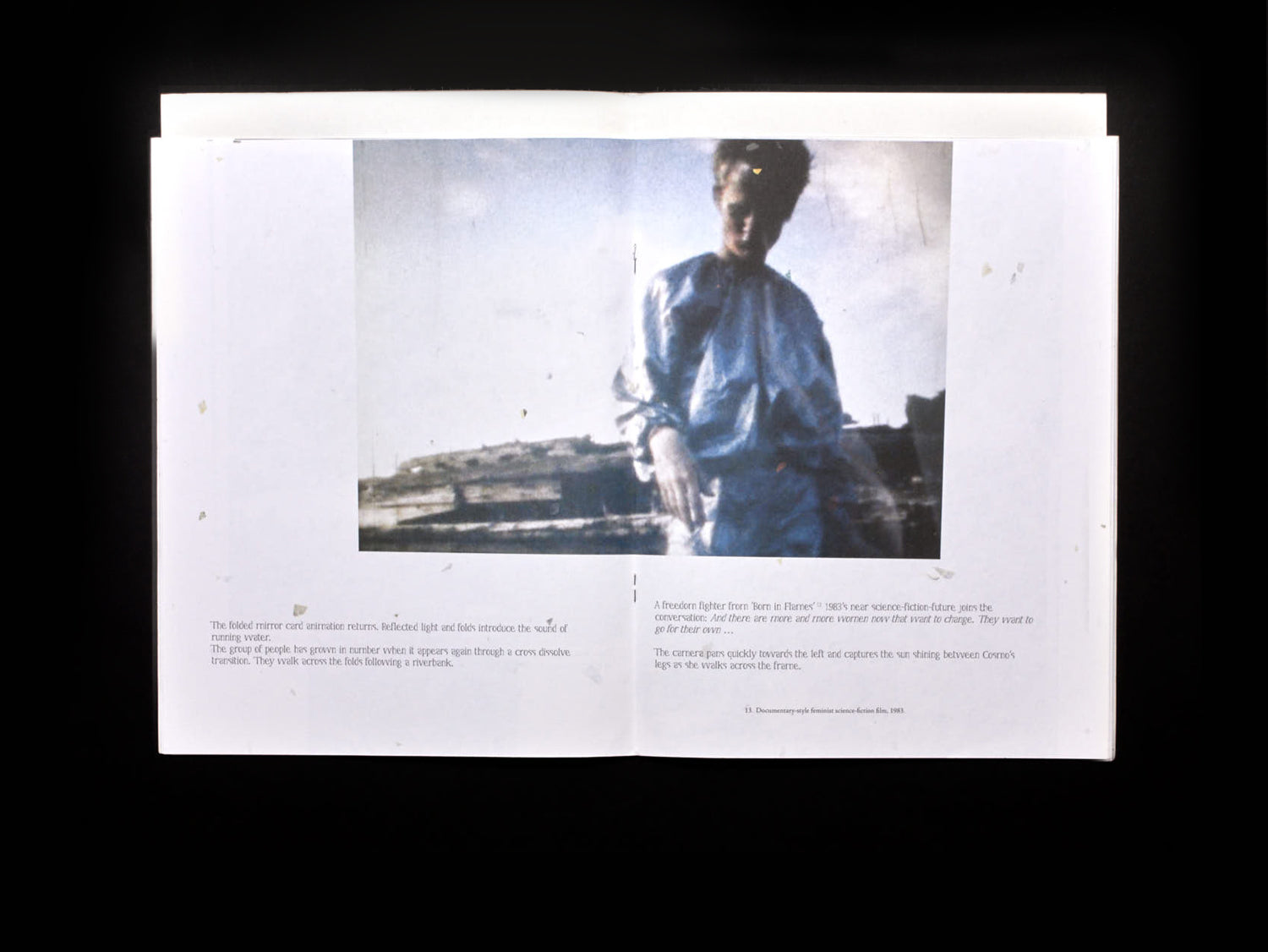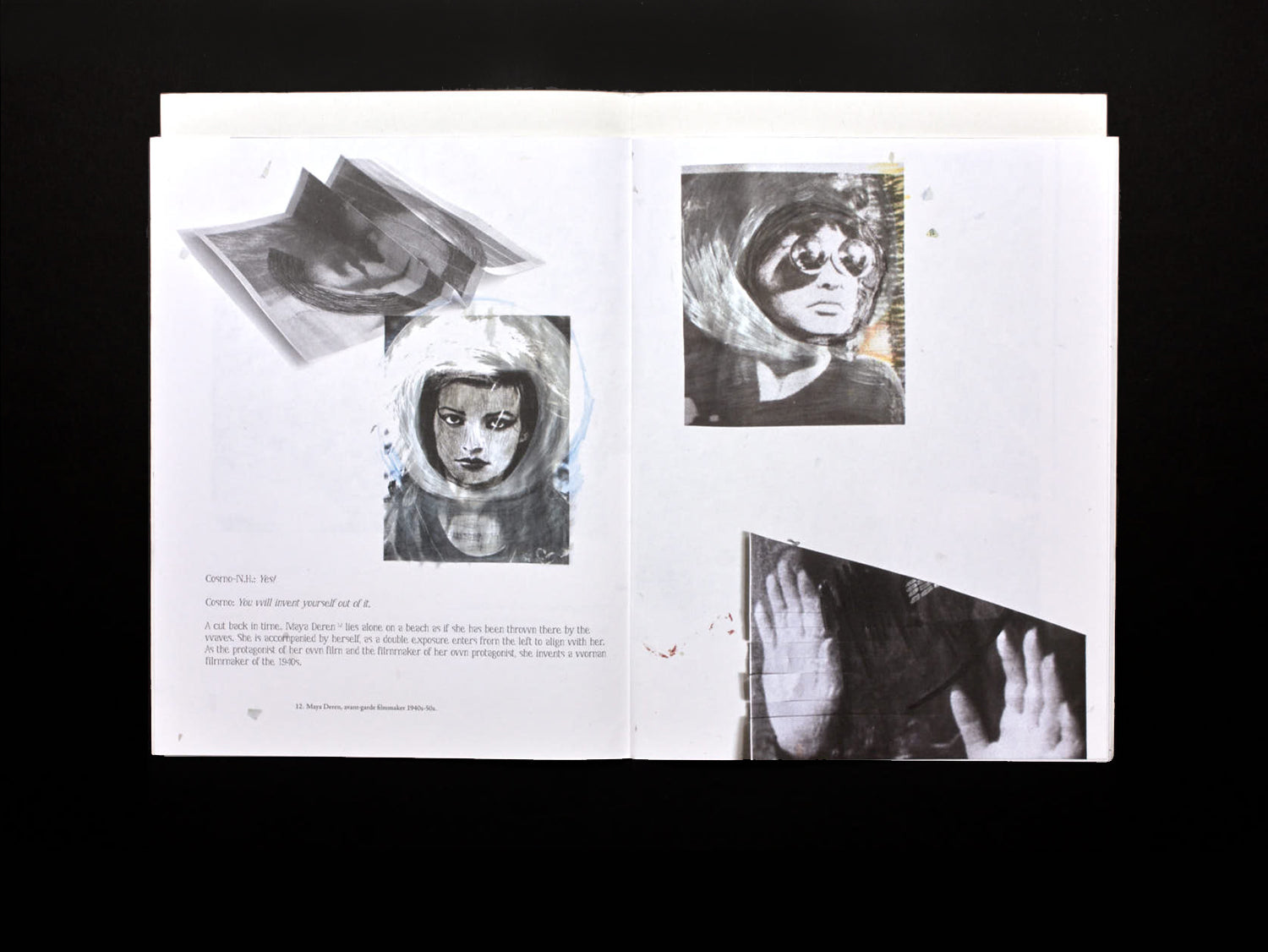 A-W-O-R-L-D-O-F-O-U-R-O-W-N is the second publication of artist Eline McGeorge published by Dent-De-Leone. It features a script of several characters, all named Cosmo who are in turn Maya Deren, Nina Hagen or Virginia Woolf stuck somewhere between the seventies and today in a world close to our own. The publication itself refuses or embraces both standards of the western world, the european A4 and the american letter while the content is made of recycled £5 notes.