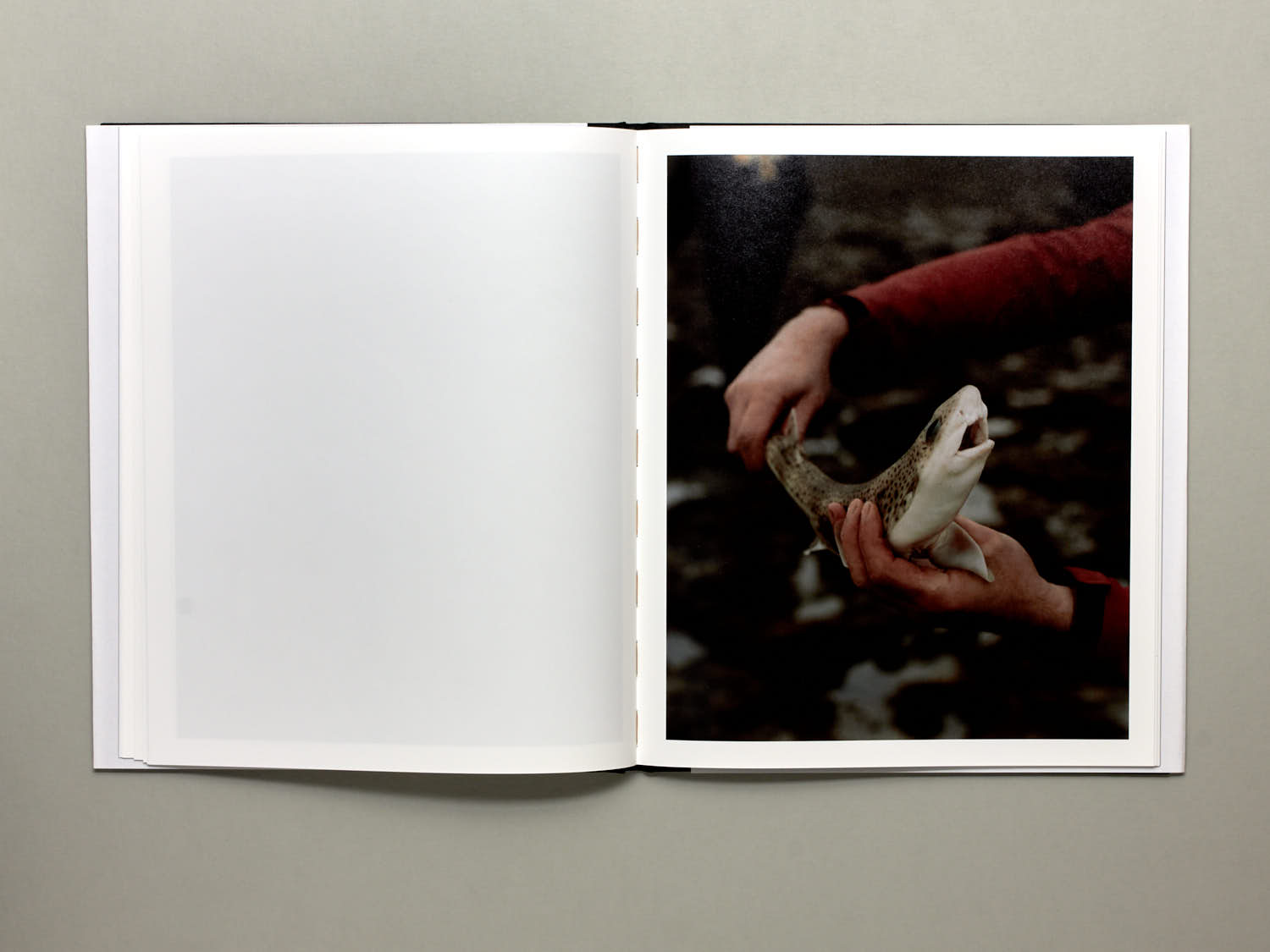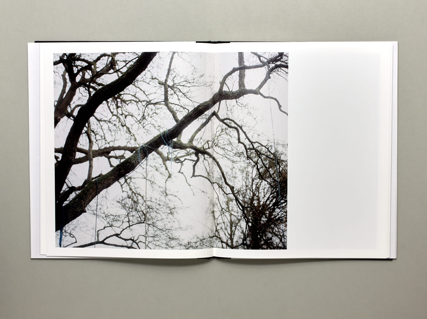 The pictures in the book begin with an imposing folly - an ornamental structure of no purpose, both foolish and excessively costly. The images that follow, a pile of coins glistening in the undergrowth, gathered crows, a fish gasping for breath outside water, rows of butterfly pupae, interweaved with haunting portraits of some of the individuals evoke a fractured narrative, a rumination on these conversations and the relationship between man and nature, co-existence and interference.