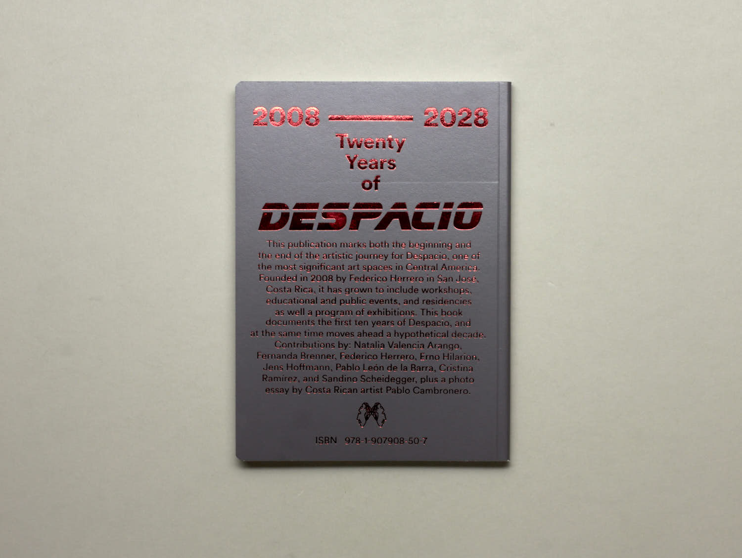 This publication marks the beginning, the end, and the future of Despacio, one of the most significant art spaces in Central America. Founded in San José, Costa Rica in 2008, Despacio began with occasional solo exhibitions of local, national, and international artists, and grew into a visionary and highly unconventional art space devoted to art, politics, and ecology by means of public programs, open studio visits, field trips, residencies, and a highly experimental exhibition program focused on pathbreaking artists from Central America. Instead of following the standardized North American and Western European art market, Despacio has proposed a utopic journey free from institutional restrictions, limits, and controls.