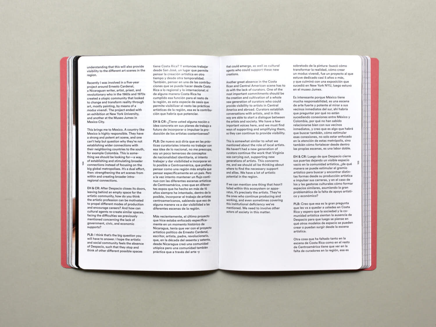 The publication includes contributions from some of Latin America’s most forward-thinking curators, Fernanda Brenner, Jens Hoffmann, and Sandino Scheidegger; an interview with artist and Despacio founder Federico Herrero by Natalia Valencia Arango; an interview with Pablo León de la Barra by Cristina Ramírez and Erno Hilario; and a newly commissioned photo essay by San José–based artist Pablo Cambronero.