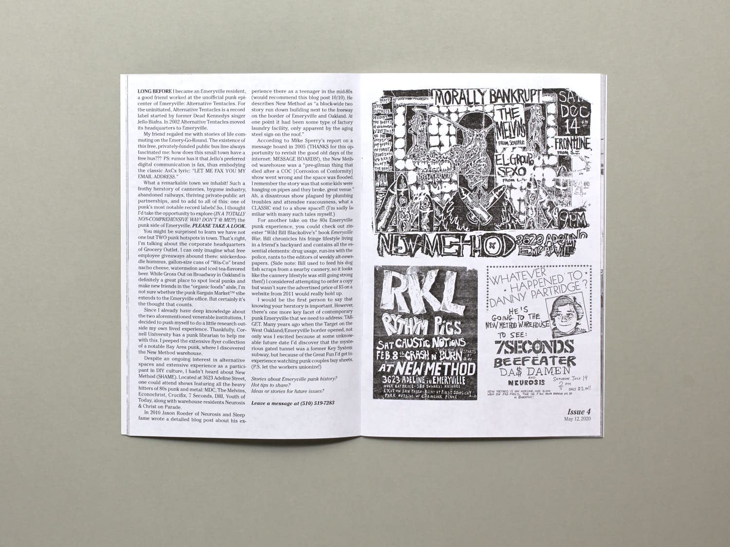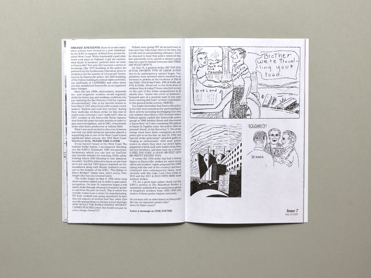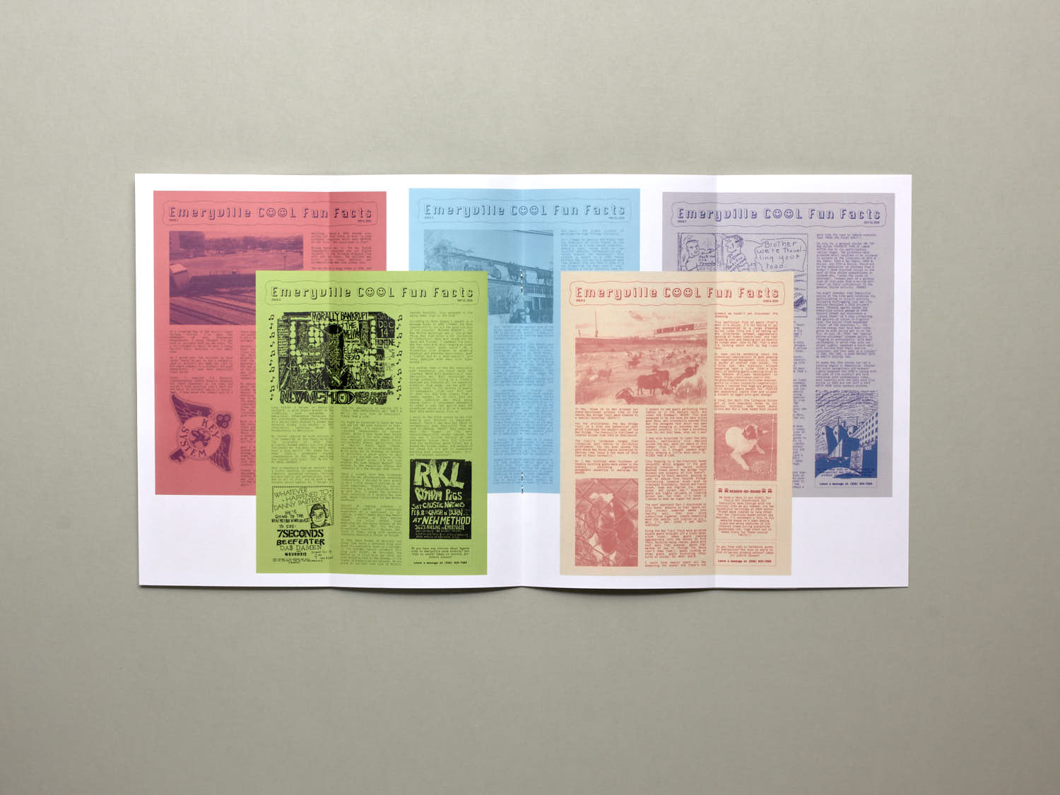 In 2020, a colorful single-page publication appeared on telephone poles, bus shelters, and street lights throughout Emeryville, California. Each issue focused on a hot topic from the area’s history: from train derailments to trans pioneers. From goats to squats. Even the fruit canning industry! Emeryville Cool Fun Facts shed light on the complexities of this small town tucked between Berkeley, Oakland, and the San Francisco Bay.