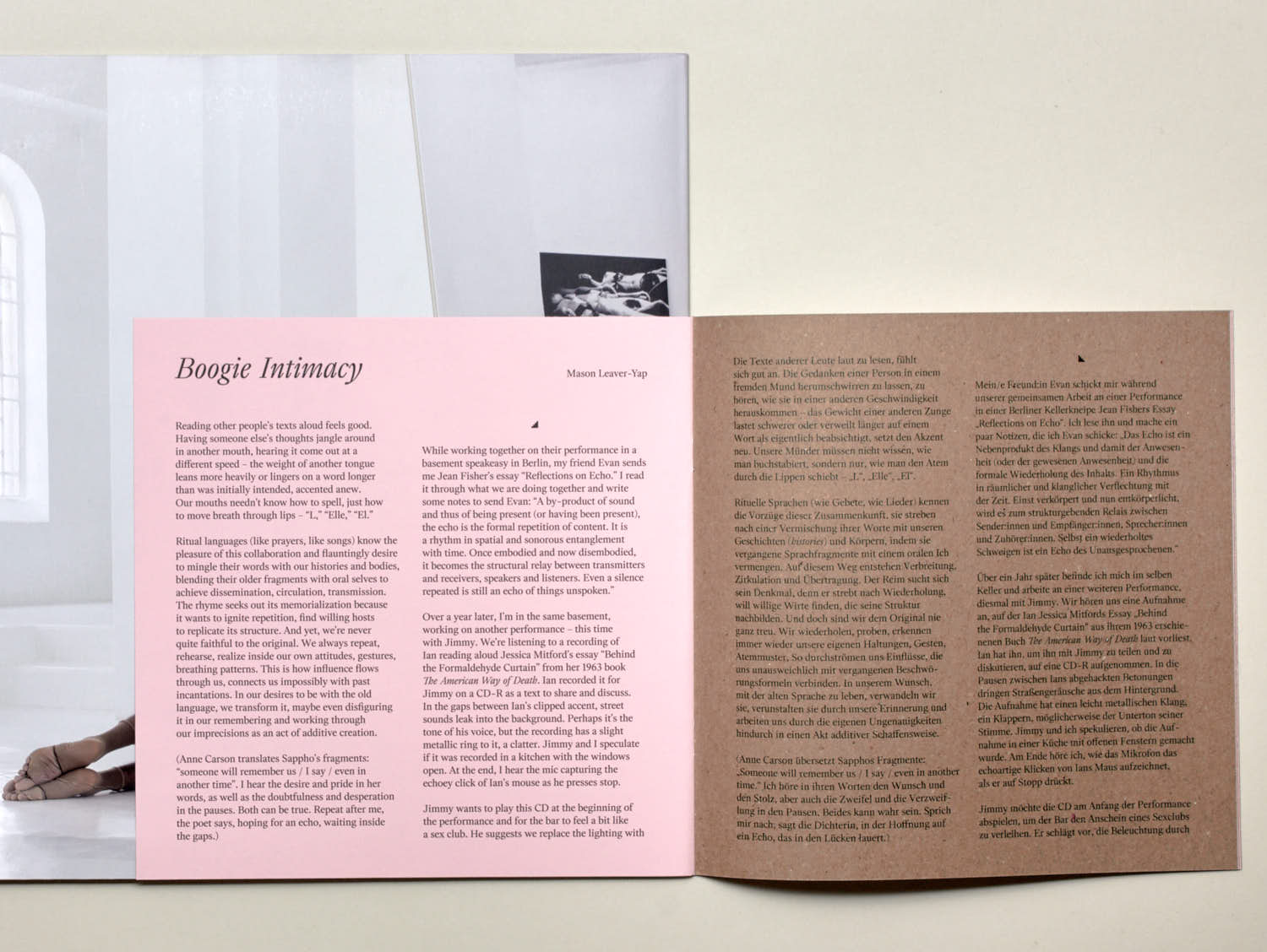 The record was conceived by Nadja Quante and the Künstlerhaus Bremen following the exhibition la musique dans la chambre, which took place there in 2022. It addressed the question of how his performance works can continue to be shown apart from being performed again in exhibitions: How can one approach a performance work anew without re-staging it?