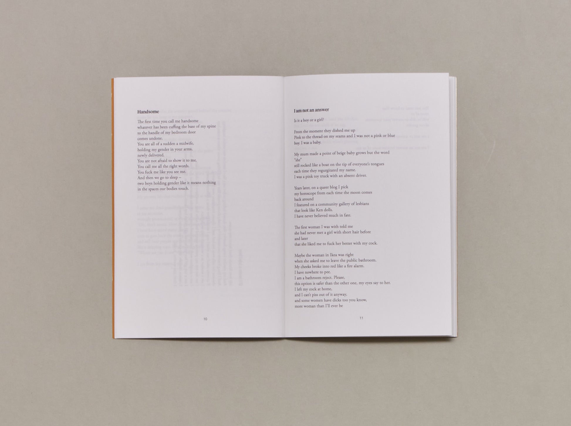 The debut pamphlet from drag king and gal dem gender columnist Kaan K/Yas Necati, "If I Were Erol", looks at the writer's Cypriot/British mixed heritage, and how it intersects with their non-binary gender identity. In these poems, Kaan travels back to Cyprus, playing with cultural norms of language and naming to imagine a new world for themselves. Whether that's through rugs, barbers, or the food that is sprinkled throughout, these poems are about resolving to heal supposed cultural conflicts and find a new, queer space for the self.