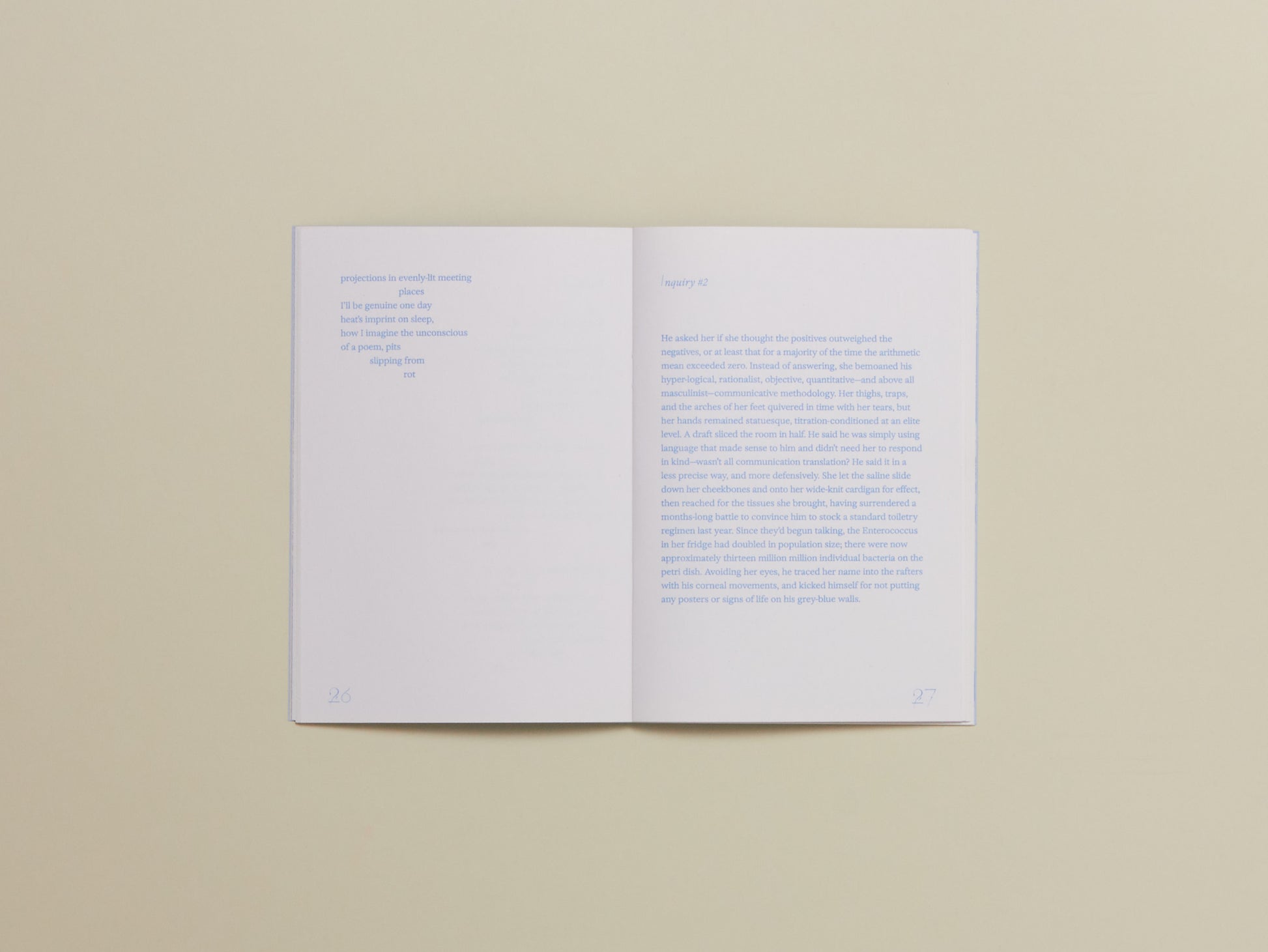 “I write poetry to carve an uncanny, tessellating aesthetic out of the failure of meaning, cataloging palliatives for bodies caught in the crosshairs of biopower, awkward appendages of scientific rigor. Extra Limbic System is a collection of poems suspended between the sweaty, steamy, transfiguration of the flesh and the vicissitudes of clinical identity. Put another way, this is a chapbook of love and loss poems. To what extent can structure be soft? Weaving from precise prose poems to spare, dream-like visions, I aim never to lose sight of language’s ability to disarm.”