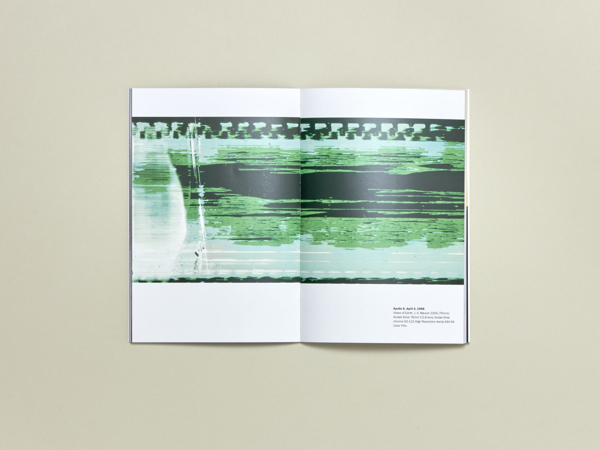 Between 1961 and 1972, NASA astronauts shot over 25,000 photographs in outer space. The overlooked anomalies in this vast archive are collected here—images marked by light leaks, radiation artifacts, and adhesive residue. What emerges is an aesthetic born of agency, error, and chance.