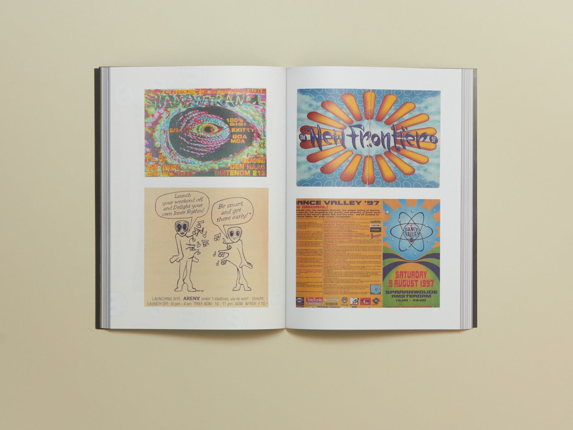 Cycling through 432 individual flyers, it is, hopefully, the first in a series of Dutch rave ephemera from the One Eye Witness vaults. Not attempting to present itself as the definitive collection, the book has been assembled from the collections of friends and peers, with the likes of Amsterdam-based cultural institution Paradiso, the legendary RoXY, visual artist Dadara, and Djax-Up-Beats’ Miss Djax included in the credits.