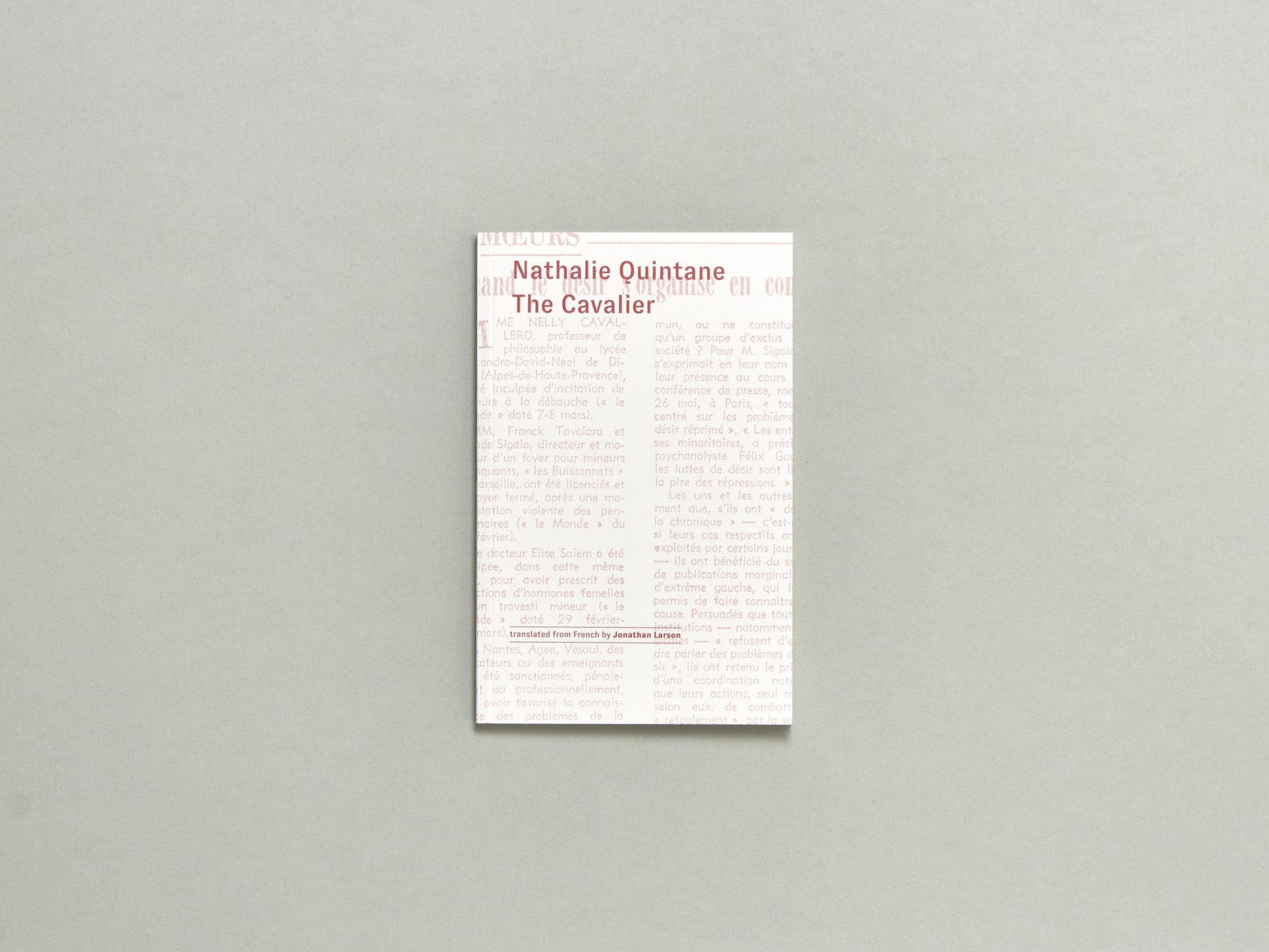 “The Cavalier conducts an intimate, anarchic, and speculative archaeology of a modern-day witch hunt in provincial France, unearthing ‘glimpses’ and ‘snatches’ of an elusive young radical whose countercultural convictions evoke the revolutionary spirit of Joan of Arc. At the grand gallop of New Wave cinema, hurdling time, place, characters, and archives, this unclassifiable work of historical attention delivers, as Quintane puts it succinctly, ‘not the revival of a scandal nor even of an offbeat news item, but a current update for the here and now.’”