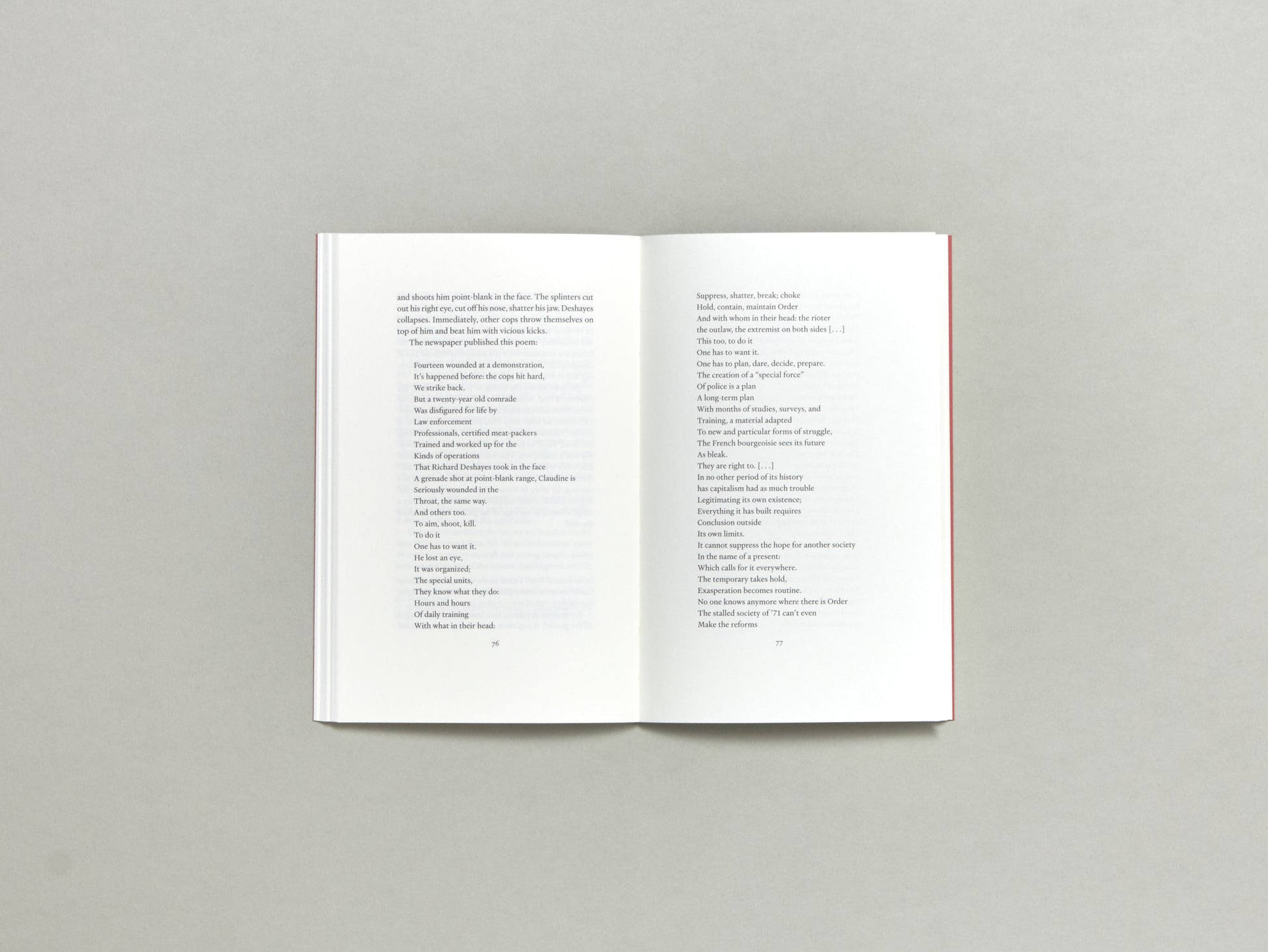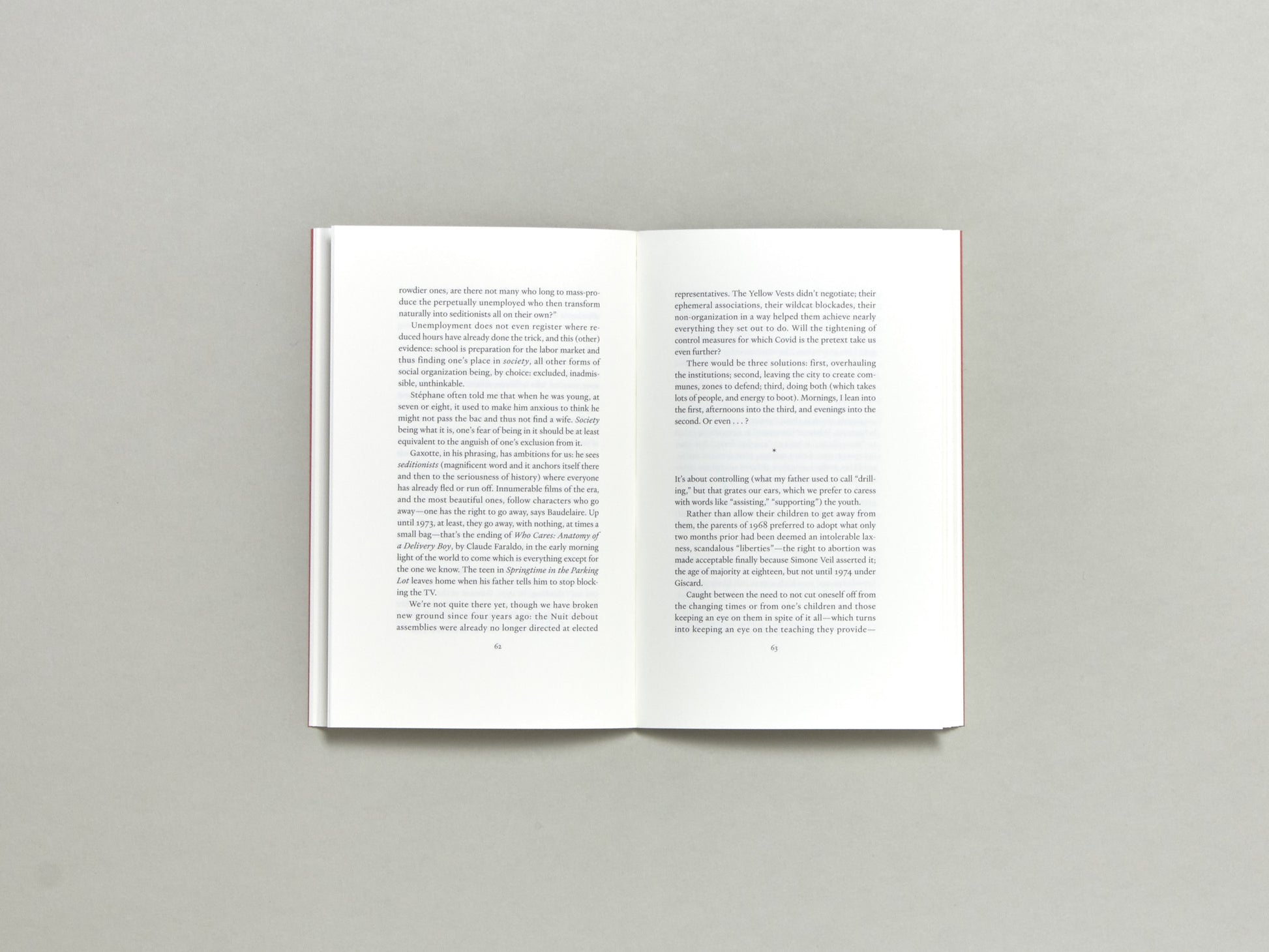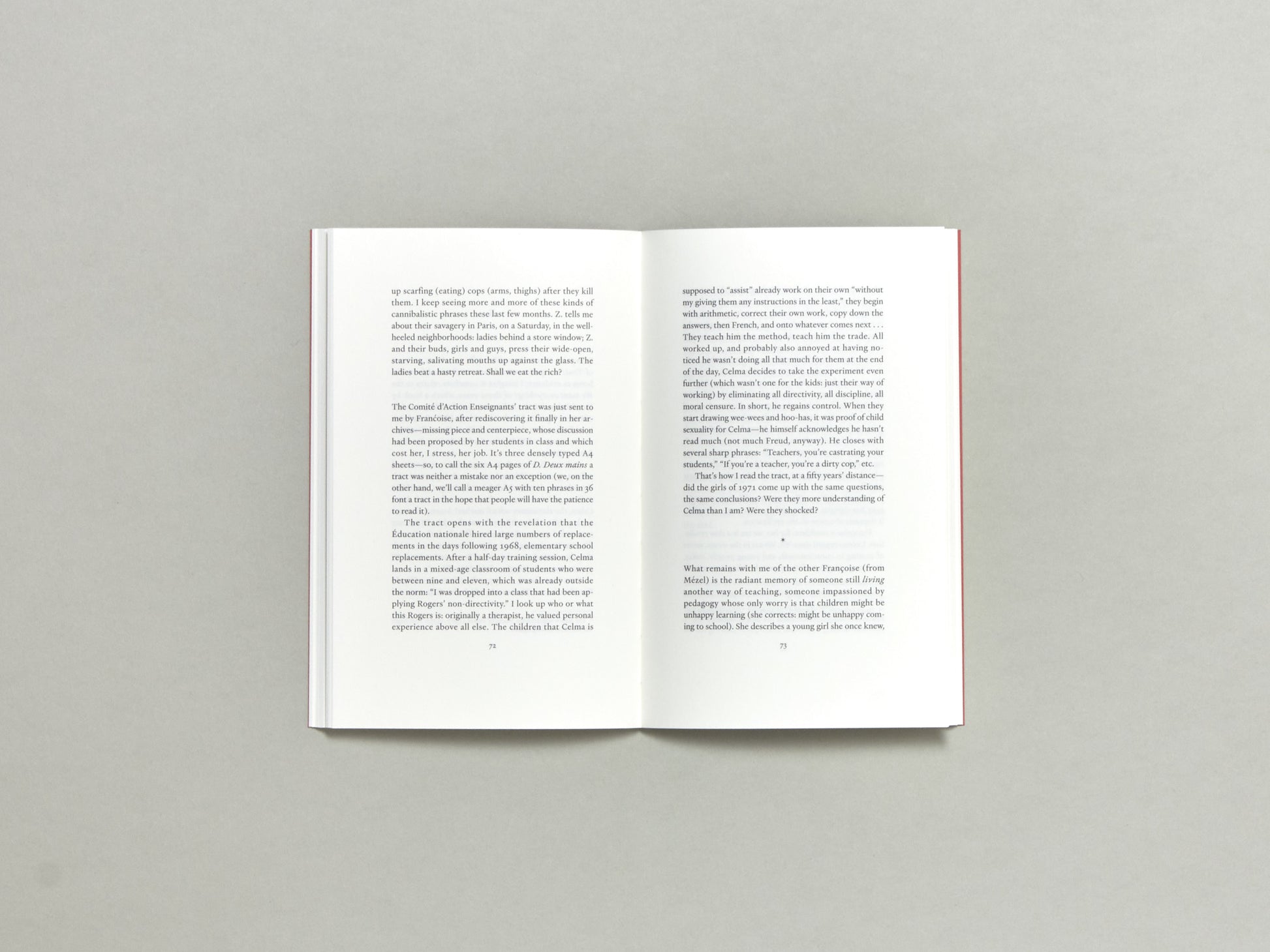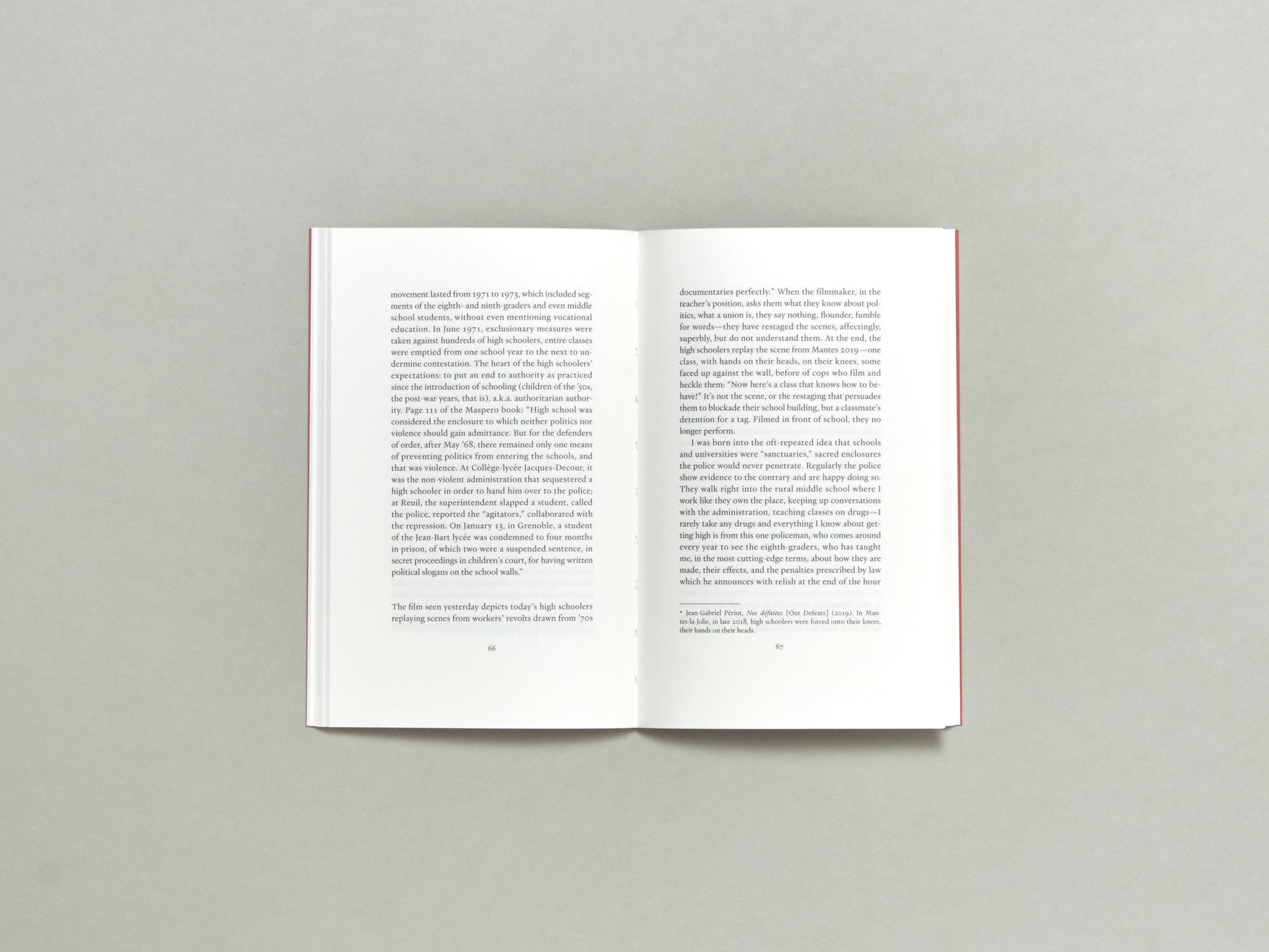 A Parisian ’68er embarks to the provinces to teach high school Philosophy but is soon driven out for “corrupting the youth.” Fifty years later, and teaching in the same French Alpine town, Nathalie Quintane delves into the scandal to probe the political order and the failures of a utopian generation.