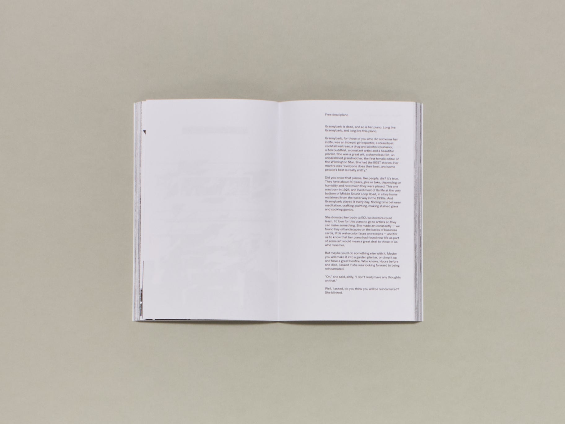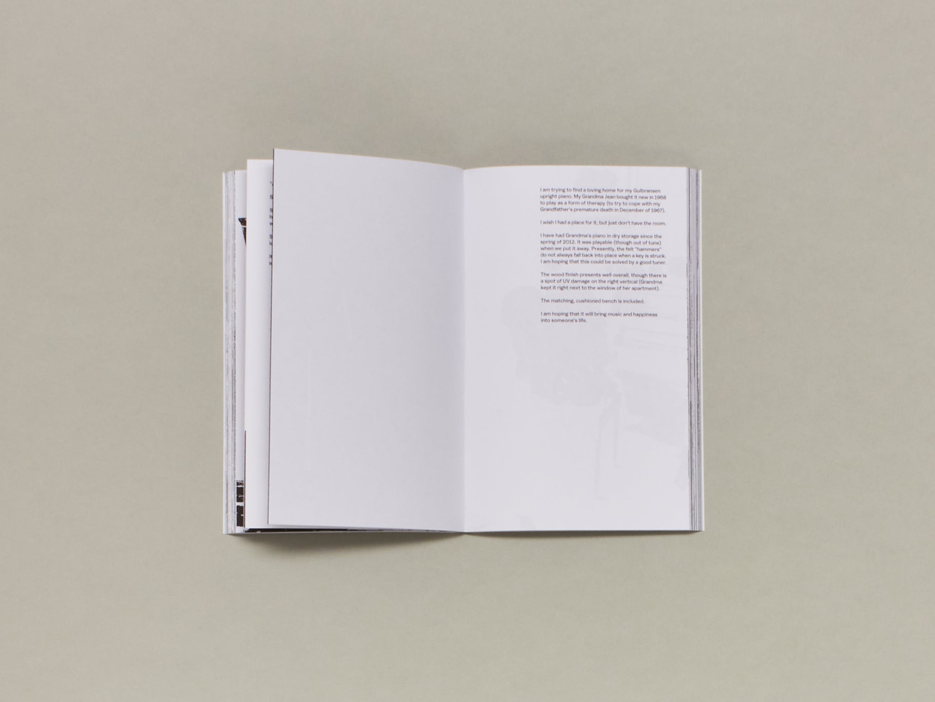 Drawing from the over 5000 images Relph collected between 2019 and 2023, Free Piano is an exploration of the life cycle of the piano, the once widely produced instrument that appears to have lost its significance in the modern era. This book presents visual representations of the pianos before their next lives, alongside unedited statements from their surrendering owners.