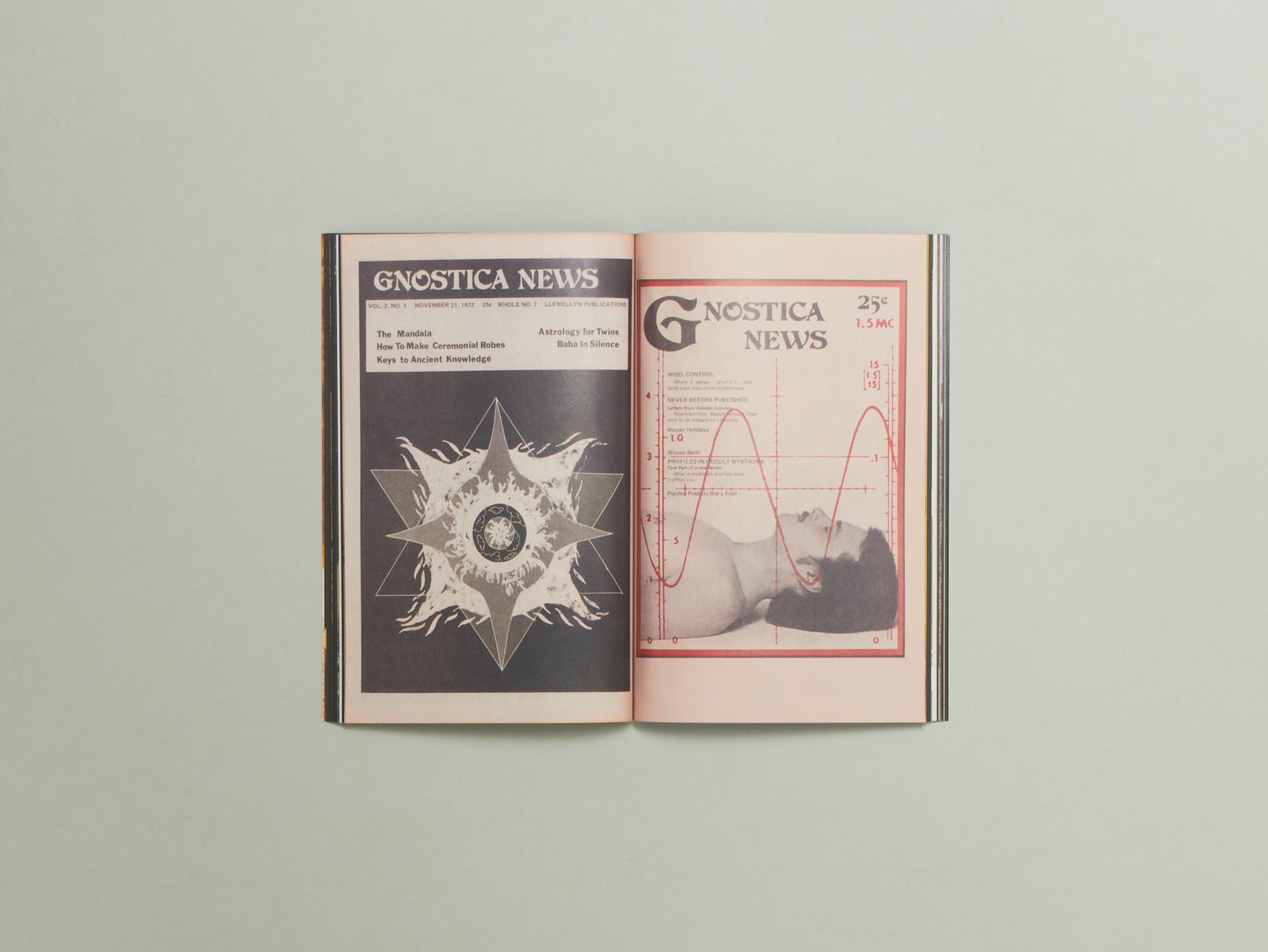 Occult Eye takes a closer look at the world of the occult sciences ESP, parapsychology, countercultural spiritualism, iconography of new religious movement, pagan fashion trends with a special examination of the graphics and design elements from 1970s gnostic newspapers. The images inside Occult Eye may tell the story a wider search for meaning during a period of social upheaval following the Vietnam War or betray fears about hidden occult influence fuelled the Satanic Panic. These dynamics shaped a cultural fascination with the mystical that persists today.