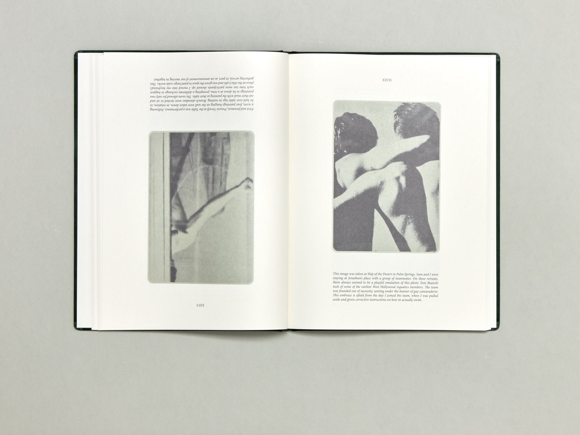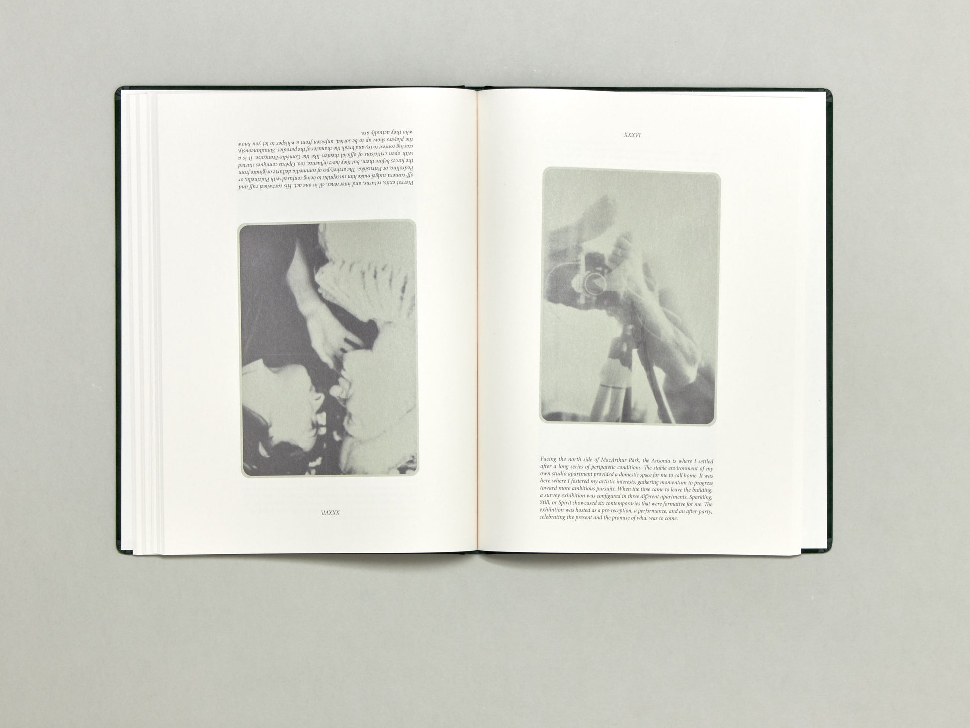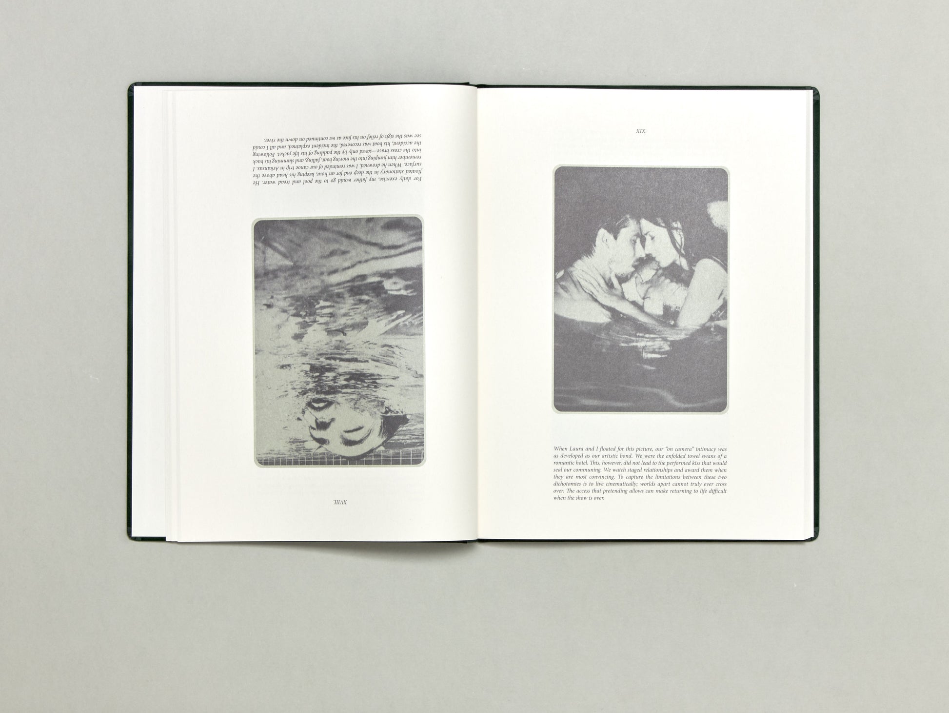 The photographs are either created by the artist in a performative manner or appropriated from cinema, television, and pop culture, past and present. The circulation and repetition of motifs invite collaboration and reflection, emphasizing the act of shared viewing as part of the work’s meaning. The book collides ( both literally and metaphorically) at the halfway point, designed to be exactly the same from front to back—revealing no beginning or end, but rather an infinite loop that can be entered from any point.