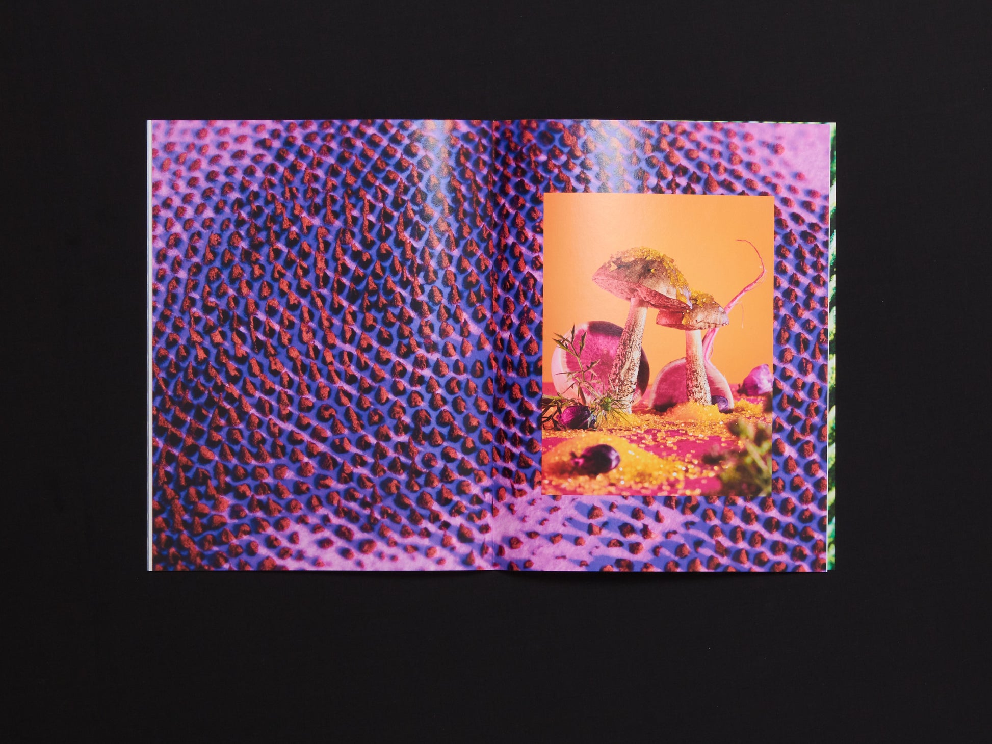 Mushrooms & Friends 3 is a collection of intimate portraits of wild mushrooms found in New York during the global pandemic of 2020. Foraged specimens are photographed as surreal still lifes, bathed in multicolored lights.