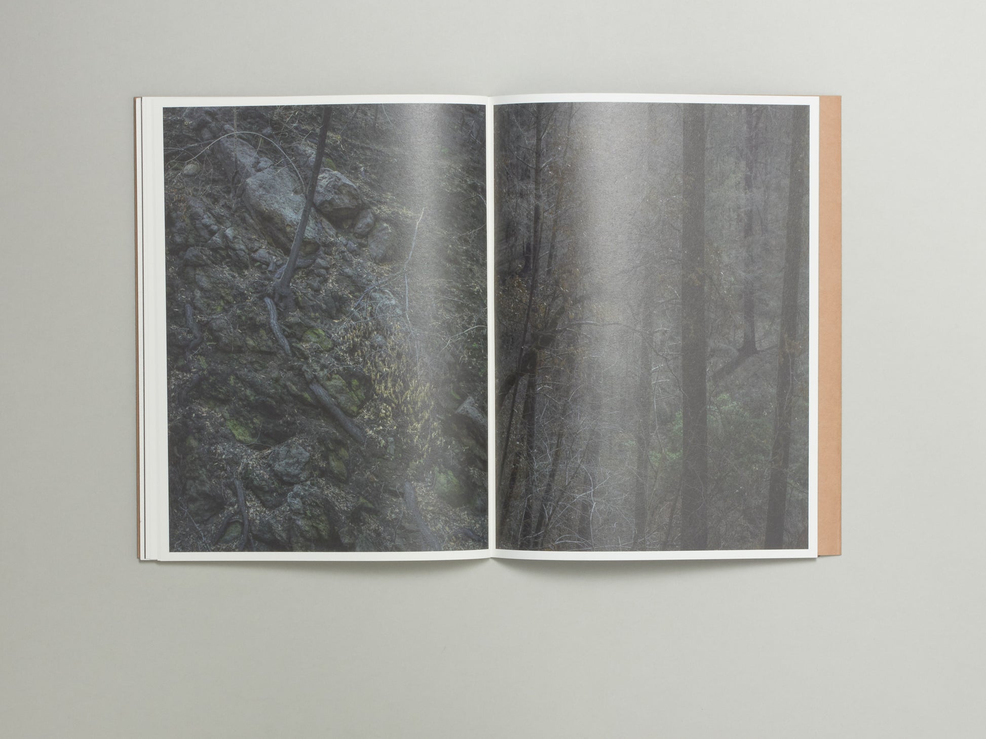 What follows might resemble a walk through the forest, but it unfolds more like a stumble. Mandle’s images don’t lead the viewer through a landscape—they pause, hesitate, and invite waiting. At first glance, the scenes may appear quiet or familiar, but subtle disruptions surface: scorched trunks, brittle branches, the dense residue of loss. The sequence shifts from light to dark, drawing the viewer into a looping, claustrophobic narrative.