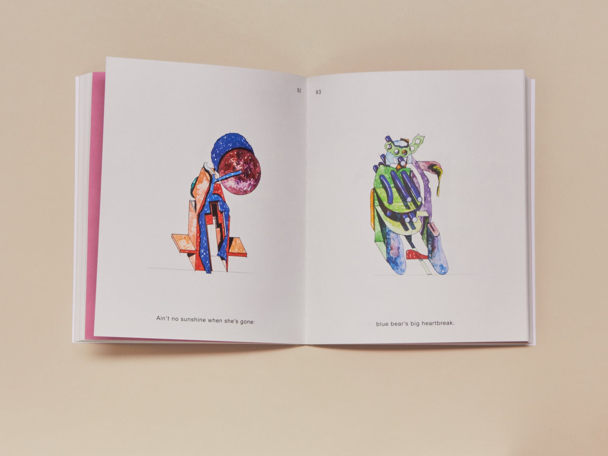 Fellow artists and creatives—including Katie Stout, Minjae Kim, Todd Selby, Dodie Bellamy, KAWS, Swizz Beatz, and Stefan Marx, among others—lent titles to each work which have been tamped together into what Serban calls ‘some kind of exquisite corpse/Frankenstein found poem’, the driving force of the book aka a large machine made of words. 148 Oblique Drawings is an exercise in imagination, drawing readers into the machinery of chance and innovation. It’s a natural evolution of the long-standing relationship between the Romanian-born, typically New York (although currently Brussels-based) artist and Apartamento, which started with a feature in issue #24 of the magazine and has been cemented with a number of collaborations, including the publication of A Thing on a Table in a House, Serban’s first book, in 2021.