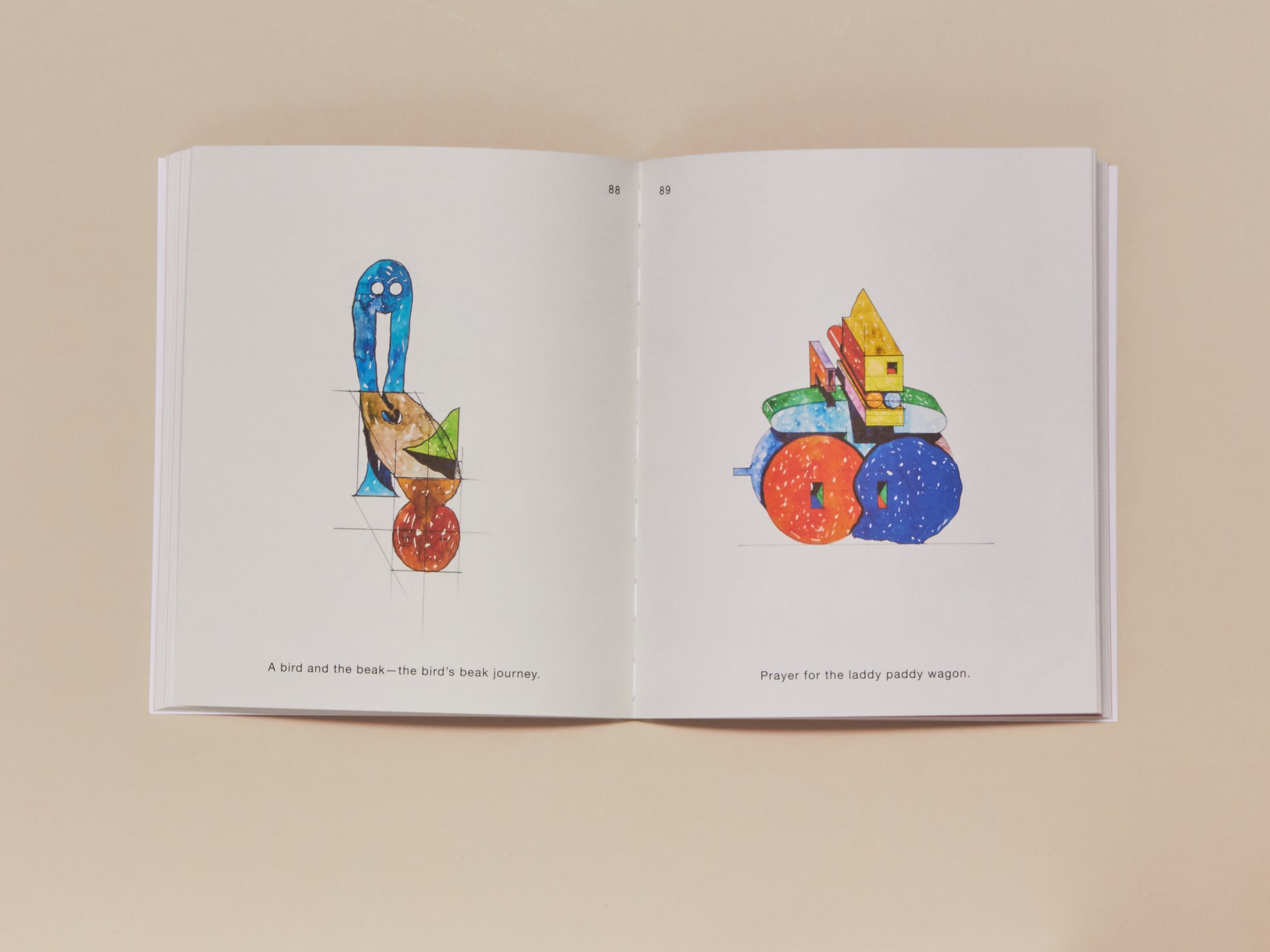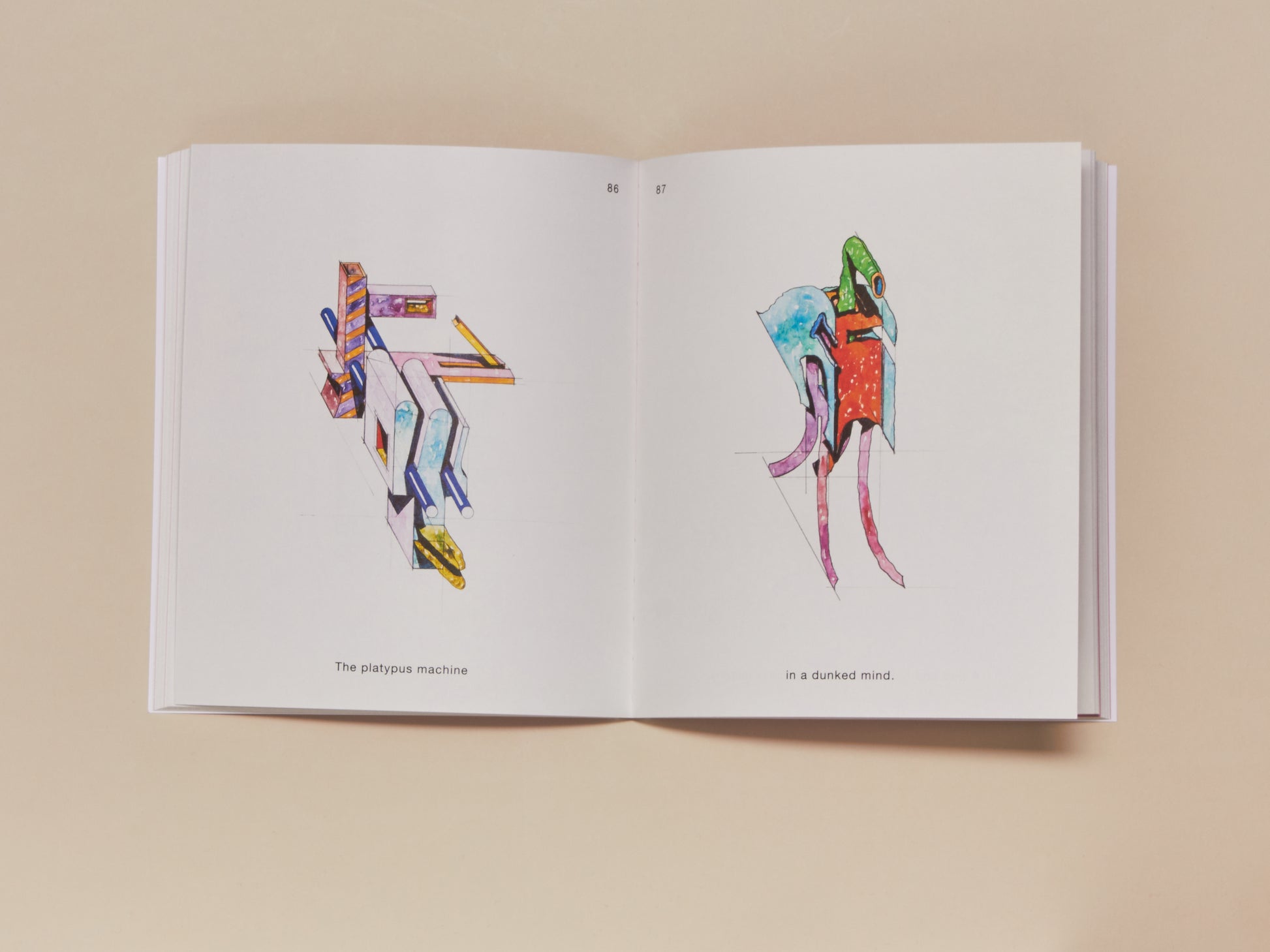 148 Oblique Drawings by Serban Ionescu (and 1 large machine made of words) lures readers into Serban Ionescu’s sketchbook where the artist’s vibrant creations, with their playful, architectural spirit, live alongside a poem made with the help of friends and family of the Ionescu–Apartamento universes. The art book compiles a series of images made throughout Serban’s daily drawing practice from 2020–2023, which relied on ‘the same ruler, the same size paper…and the flow of watercolour’.