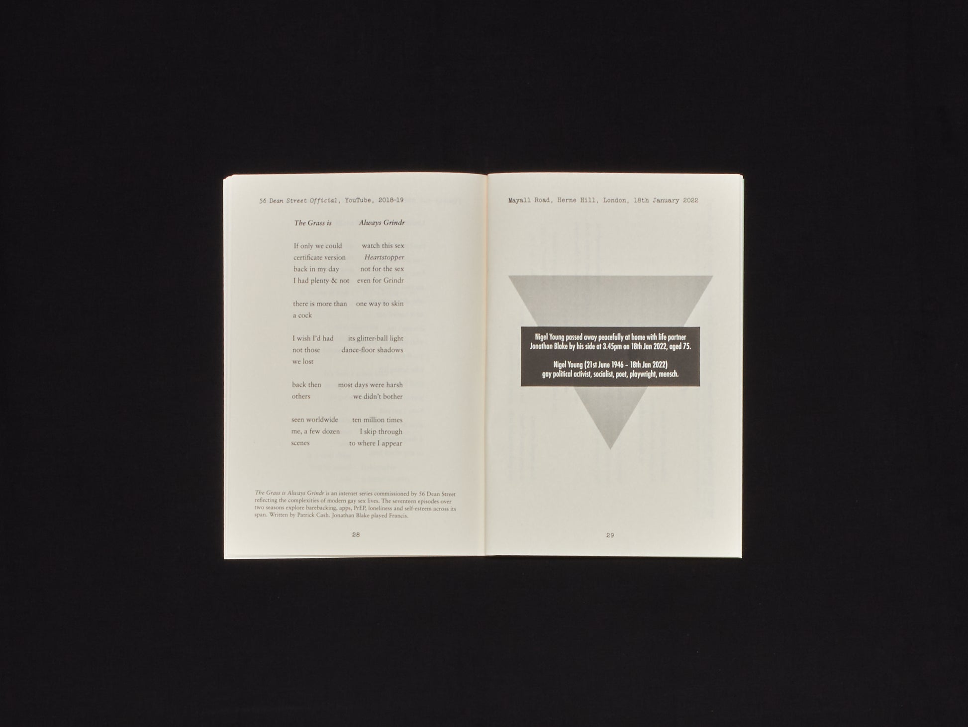 Jonathan Blake was diagnosed so early in the UK AIDS epidemic that he was named Patient L1 at London Middlesex Hospital and is immortalised in the film, Pride. Born in 1949, he has lived through the high and lows of queer life for over seven decades. He also shared four of those decades with his life-partner, Nigel Young.
