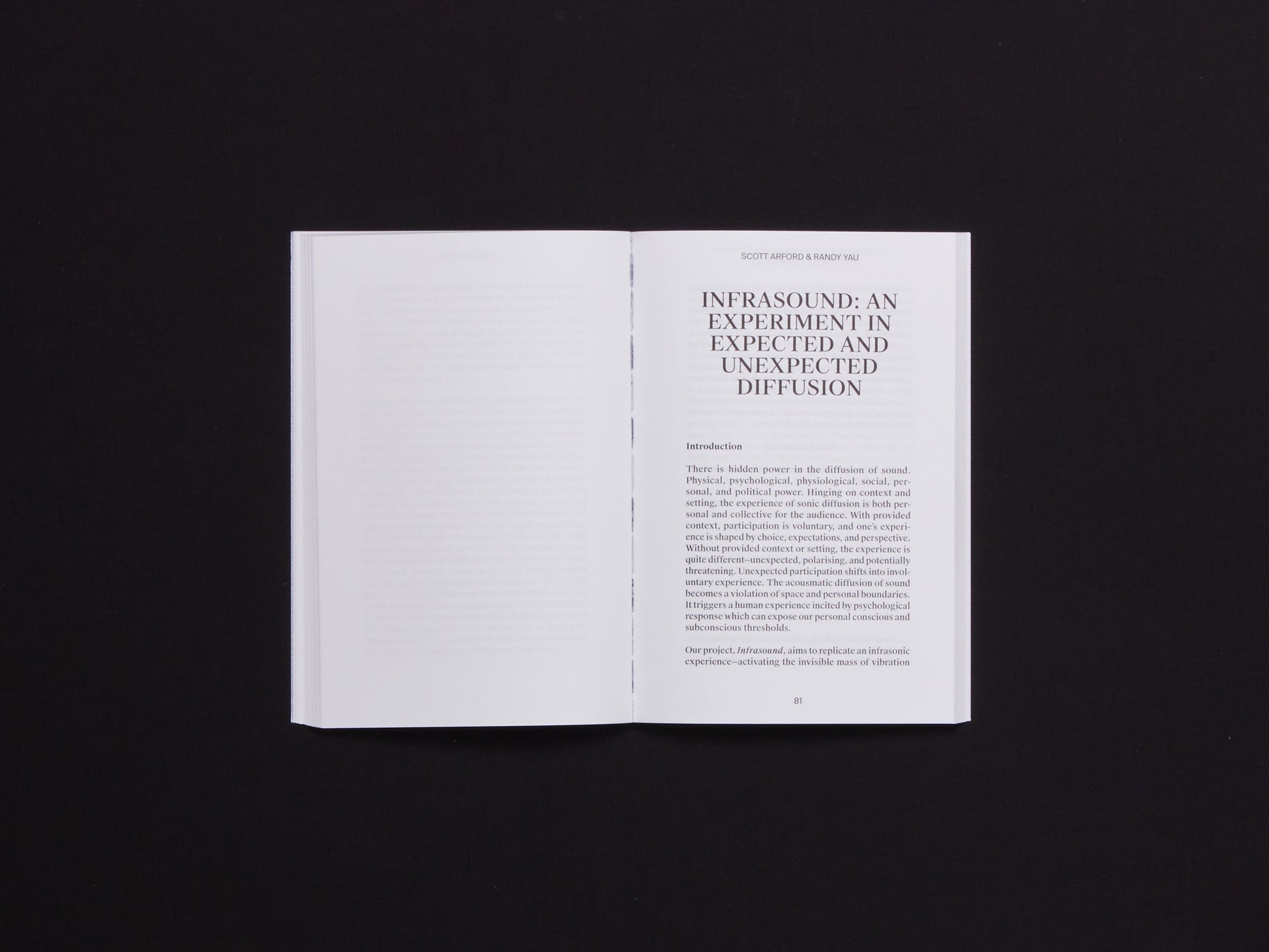 This calls for an exploration of the vast domain of sound creation in which, here and there, ideas, concepts, and sometimes new works appear that fully embrace the question of the deployment of sound, its dissemination and its expansion. An exploration focussed on the listening experience—a fundamentally musical experience—but adopting a critical approach which may sometimes call into question traditional ways of sharing and listening to sound, the status of listener and creator, and which may even challenge the acoustic integrity of venues and the legitimacy of diffusion systems.