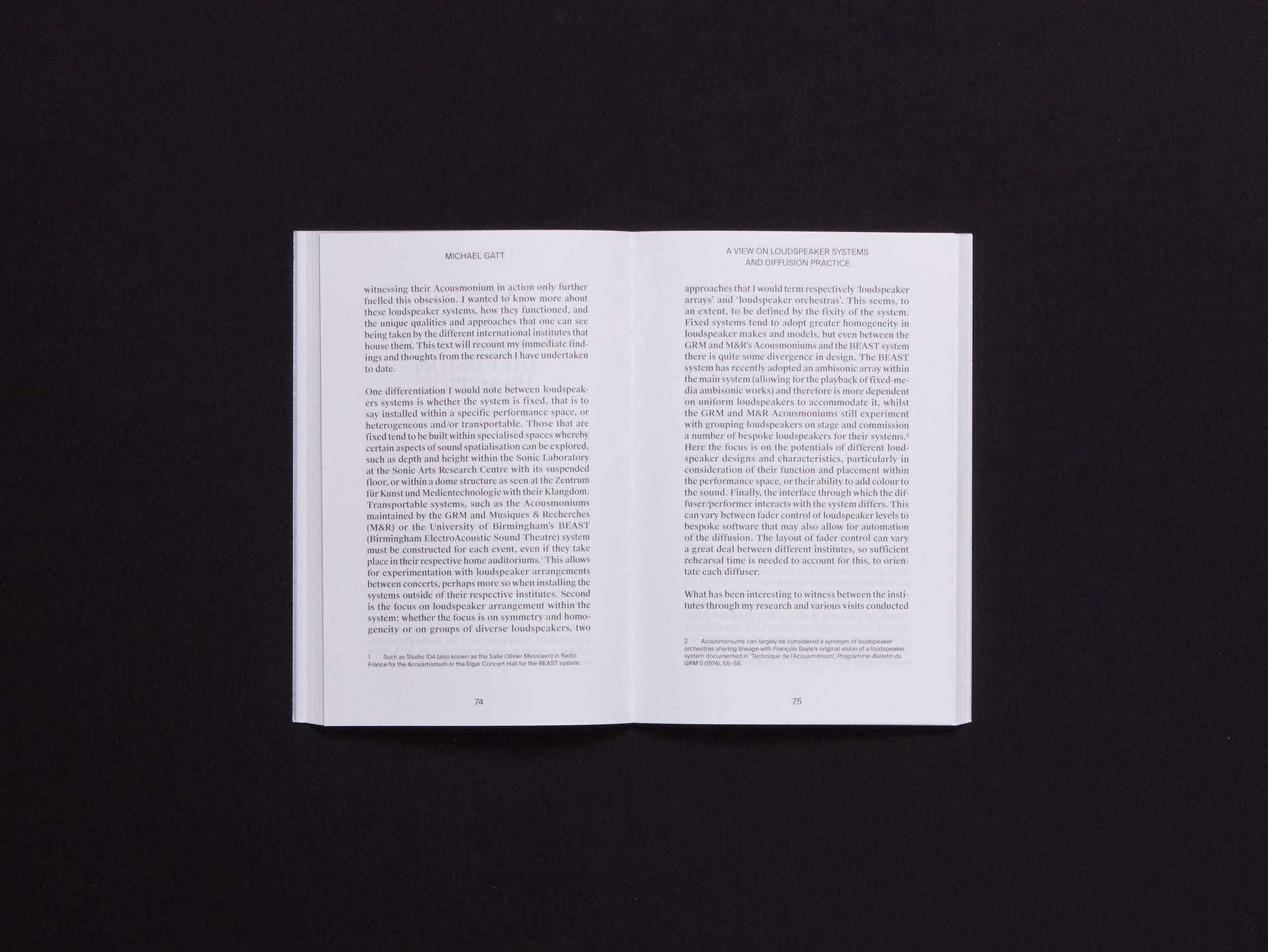 [...] sound projection in a concert hall is a logical extension of the concerns of the Groupe de Recherches de Musique Concrète and requires its technicians to properly study multiple aspects of the problems of sonorisation that are often neglected and to date have been almost exclusively the preserve of ‘public address’ technicians.1