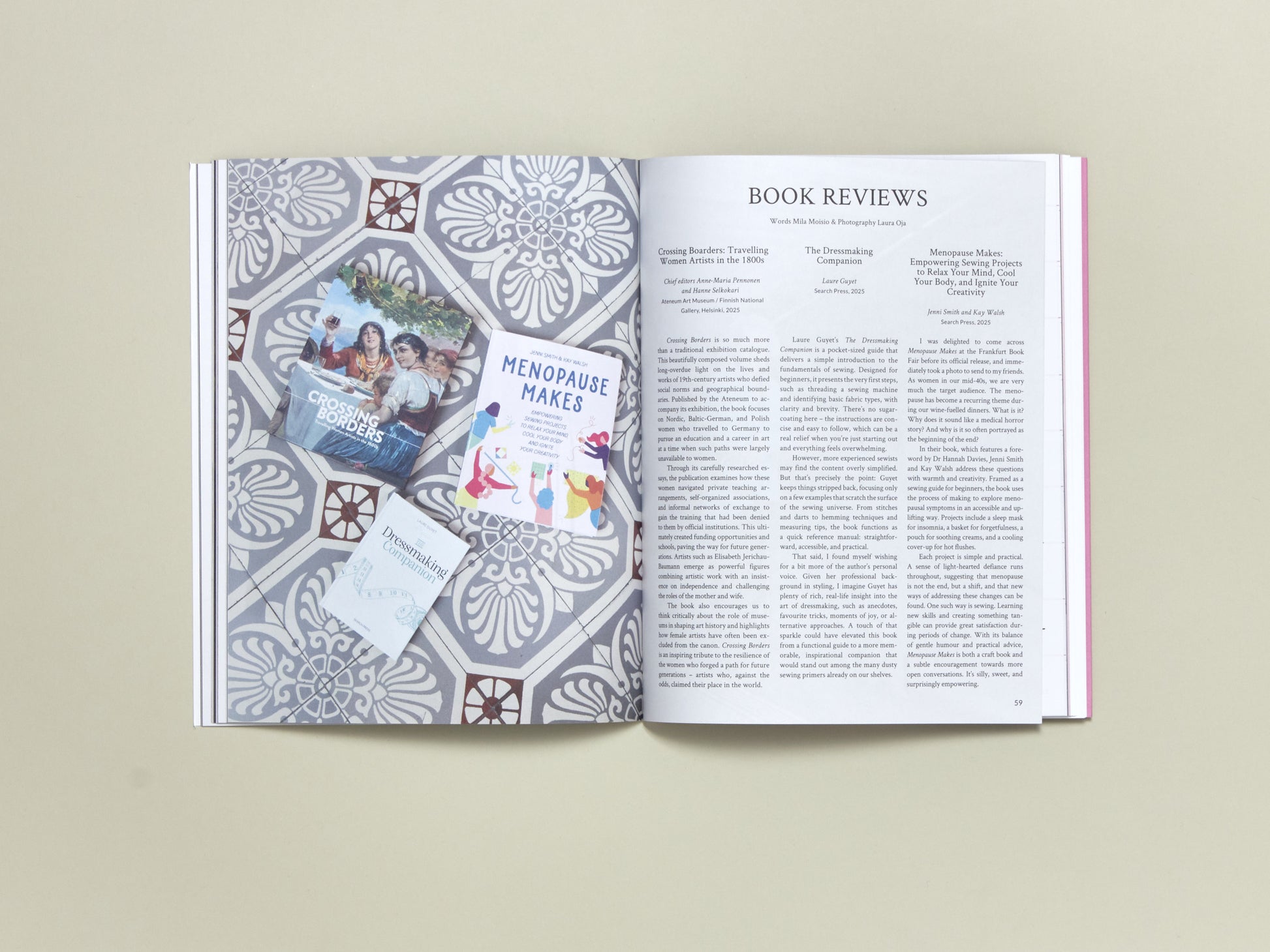 This winter issue is a celebration of happiness in making and wearing self-made clothing. Sewing is a simple and accessible form to spark joy and bring a sense of purpose, whether you’re creating festive wear for the season, thoughtful handmade gifts, or simply enjoying the process of planning and making by hand. Alongside the patterns, the issue features articles and essays offering new perspectives on sewing, creativity, and wellbeing, reminding us why working with our hands is one of the simplest and most rewarding ways to feel happy.