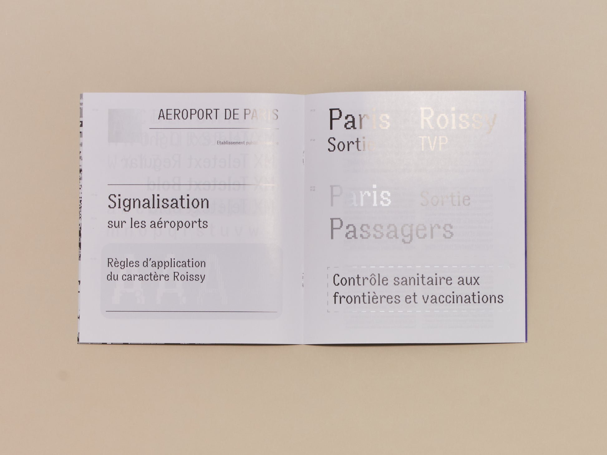 For Maximage, this anachronistically low-resolution typeface represents some of Frutiger’s most impressive work. The technical limitation of the CRT screen grid mismatched Frutiger’s humanist approach. Far from being cornered by the technology, Frutiger created an elegant hybrid —a humanist pixel font — whose details are fascinating. At a distance, the letters’ open counters create a highly legible type colour. Getting closer, Frutiger’s precise drawing becomes apparent. Strokes sometimes end with a little slab or a pixelated teardrop shape to avoid screen bleed. Additionally, characters with acute angles feature noticeable light traps which make the text look unexpectedly sharp in small sizes and extremely graphic in bigger sizes. Frutiger successfully addressed a technological challenge with his masterpiece, which was only in use for a few years – a new generation of screens would soon have sufficient resolution to support Alphabet Roissy.