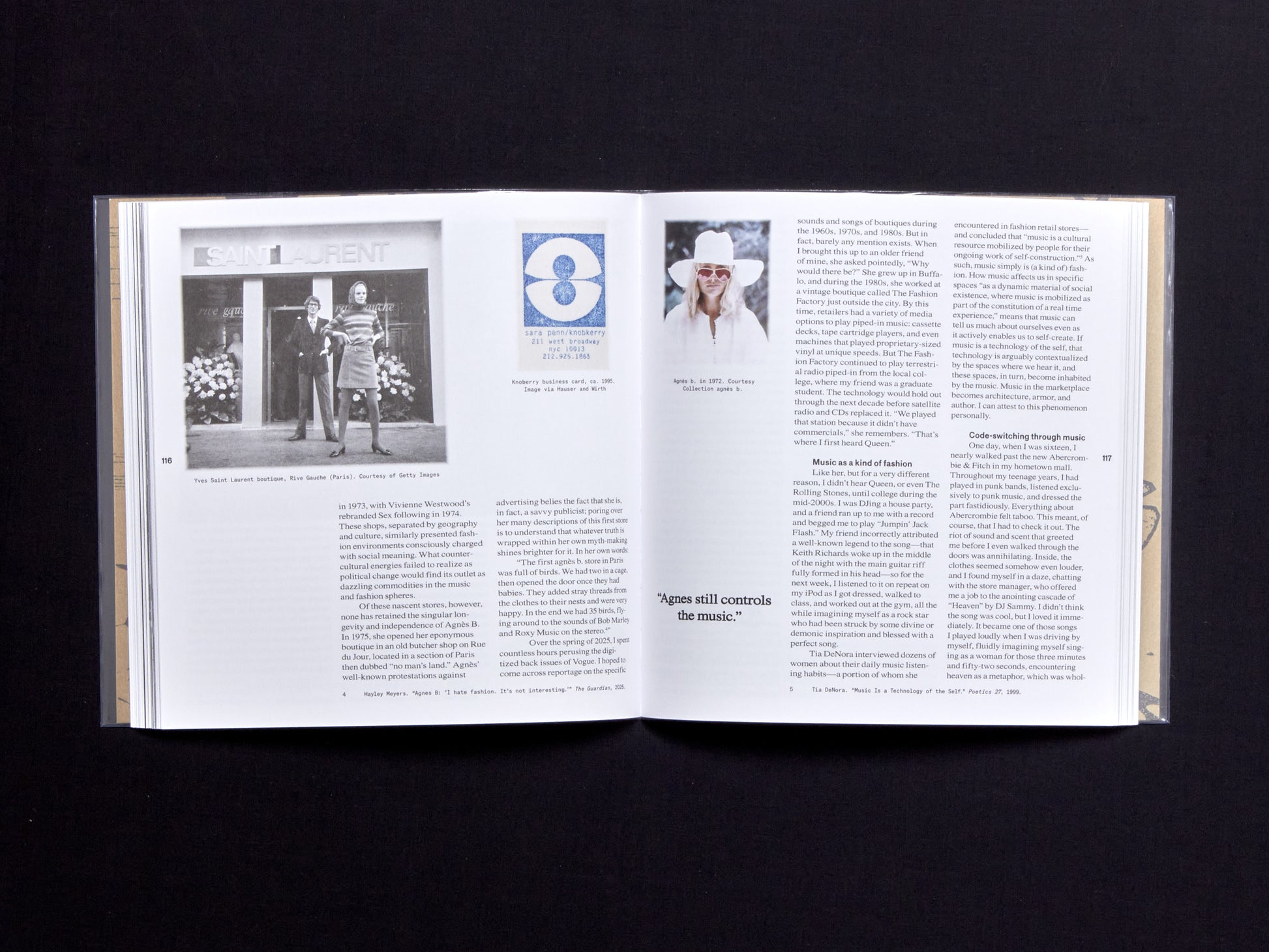 The eighth issue of Viscose examines the myriad of music and sound cultures of fashion. Entirely untethered from materiality and image, sound is the proof that fashion operates just as vividly in the purely atmospheric. From the artfully curated musical narratives of the runway to the ambient sonic environment of shops, fashion both emits sounds and seeks to associate itself with it for its own advancement. Music in particular asserts fashion’s existential relationship to time: it aesthetically time-keeps fashion media and confirms sartorial novelty by mirroring it rhythmically. To a public consciousness, the intimate relationship between fashion and music is obvious and at times even understood as one and the same. Sound glues material such as clothes to wider zeitgeists and mediated lifestyles, and as such, to cultural memory itself. As Mary E. Davis has illuminated, the alliance is profoundly historic: as far back as 1672, fashion periodicals have covered clothes and music as equally essential components of an elegant, fashionable lifestyle. Music, in fact, surrounds fashion: it enwraps makers, mediators, and consumers alike in ephemeral, yet intensely meaningful, signifiers of taste. Countless designers have come to fashion through musical subcultures, and labors in ateliers to particular playlists. Indeed, style most often has a soundtrack of its own, or dances to a specific tune. Fashion emits sounds before and after the musical. The clicking of heels, the rustling of a sweater, the hissing of a zipper. The ambient humming of a sewing machine; the conclusive “beep” from a store cashier. For the 8th issue of Viscose, we set out to examine the sonic landscapes of fashion in a most expansive manner. In billing our issue “sound” we seek to gesture to more visually obscure and materially ephemeral interplays between fashion and the auditory—in wardrobes and shops, on the body and in the nightclub. With music culture at the center of our inquiry, we hope to seek beyond and towards the more ephemeral sounds the clothing and fashion emits, records, and appropriates. We are pursuing the possibility of rendering fashion in entirely sonic terms, and how this translates into written words, in a print magazine.
