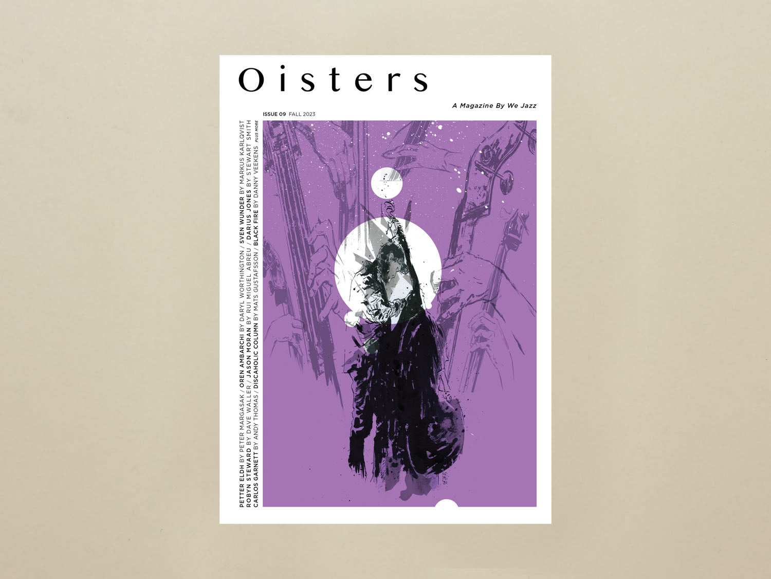 The ninth issue of We Jazz Magazine, "Oisters" for Petter Eldh. 128 pages, 170 x 240 mm in size and printed on 140g Edixion paper with laminated 300g Invercote covers. All articles presented IN ENGLISH. Petter Eldh by Peter Margasak, Oren Ambarchi by Daryl Worthington, Sven Wunder by Markus Karlqvist, Robyn Steward by Dave Waller, Jason Moran by Rui Miguel Abreu, Darius Jones by Stewart Smith, Carlos Garnett by Andy Thomas, Discaholic column by Mats Gustafsson, Black Fire by Danny Veekens, reviews, plus more.